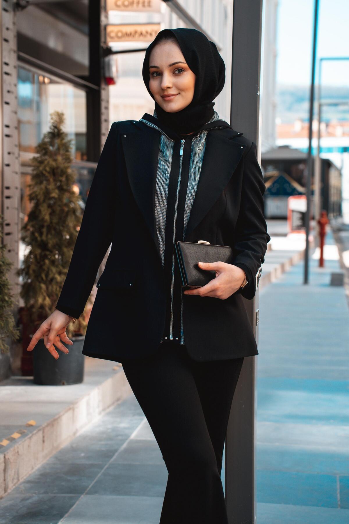 File Detaylı Beli Büzgülü Ceket File Detaylı Beli Büzgülü Ceket 40Y5CKT00108BS L