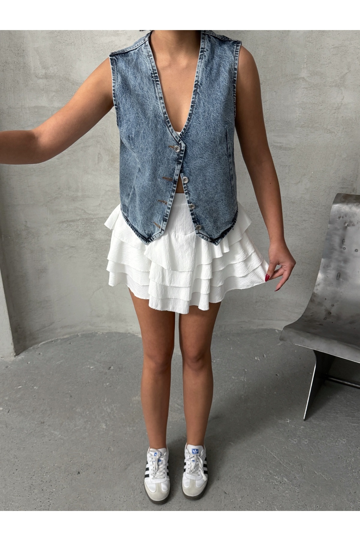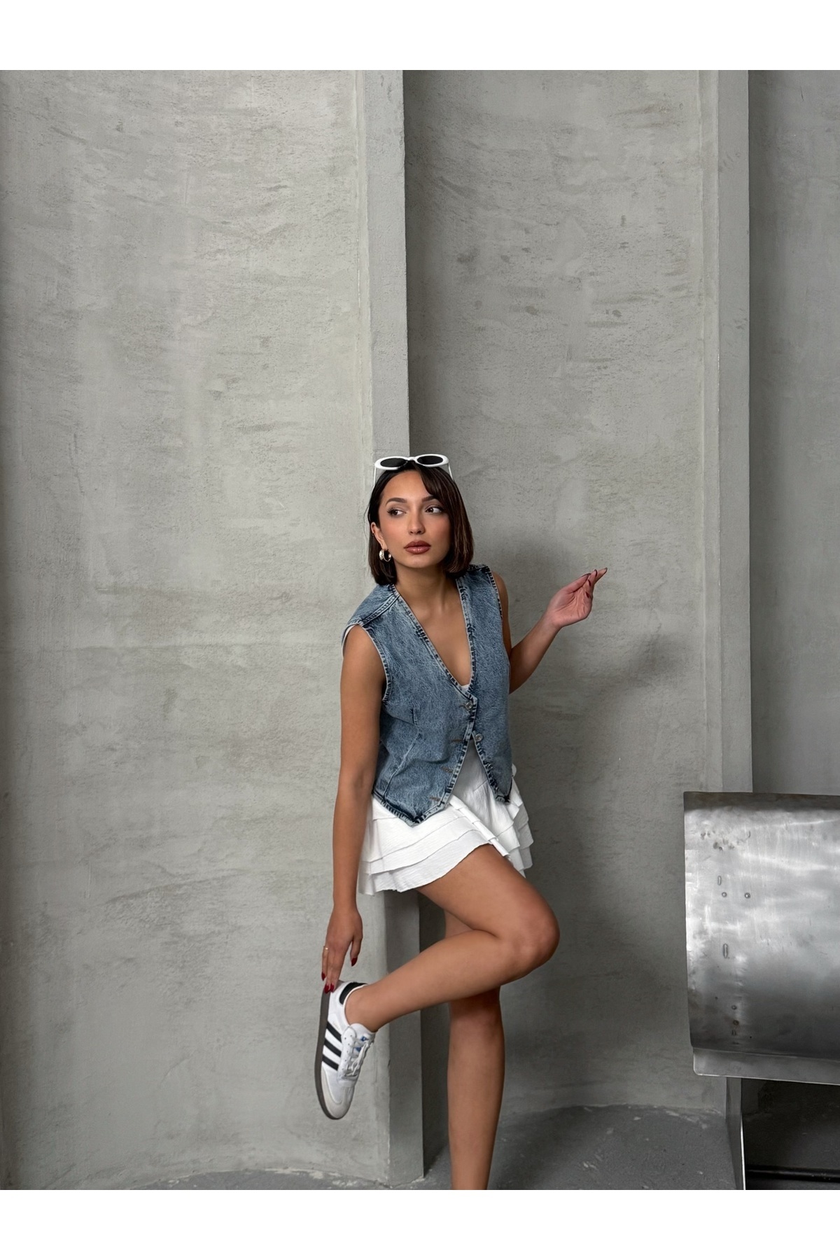 Kadın V Yaka Pensli Jean Kot Yelek ZYN-58772 Kadın V Yaka Pensli Jean Kot Yelek ZYN-58772 Standart