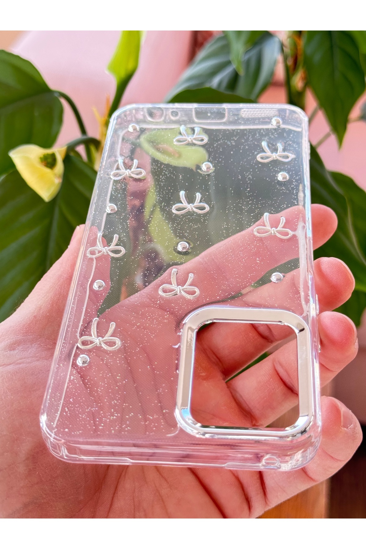 Xiaomi Redmi 12 4G Kılıf Fiyonk Desenli Şeffaf Simli Gümüş Kamera Çıkıntılı Parlak Kapak Xiaomi Redmi 12 4G Kılıf Fiyonk Desenli Şeffaf Simli Gümüş Kamera Çıkıntılı Parlak Kapak FIGURLU XIAOMI RM 12 تک سایز