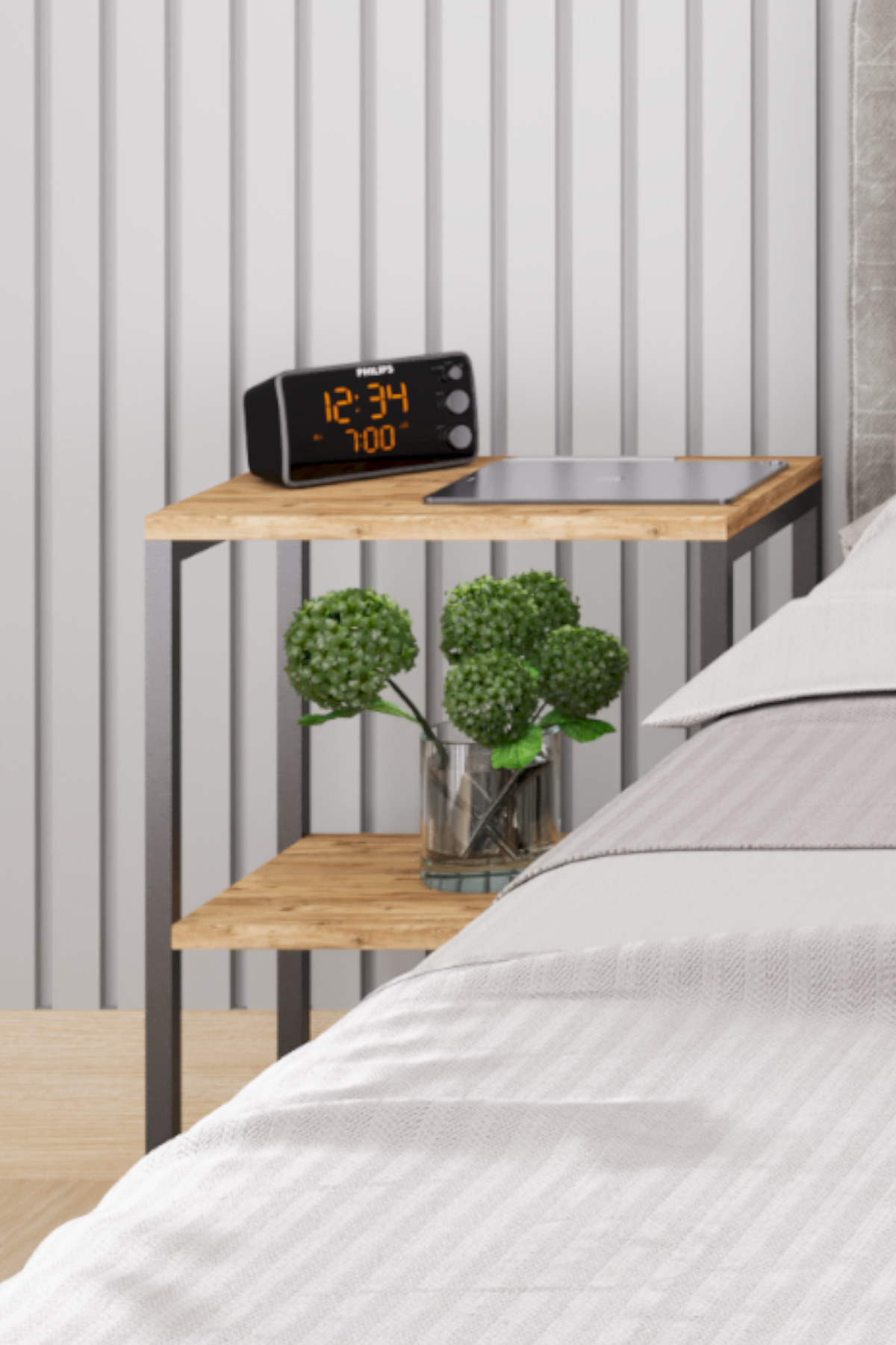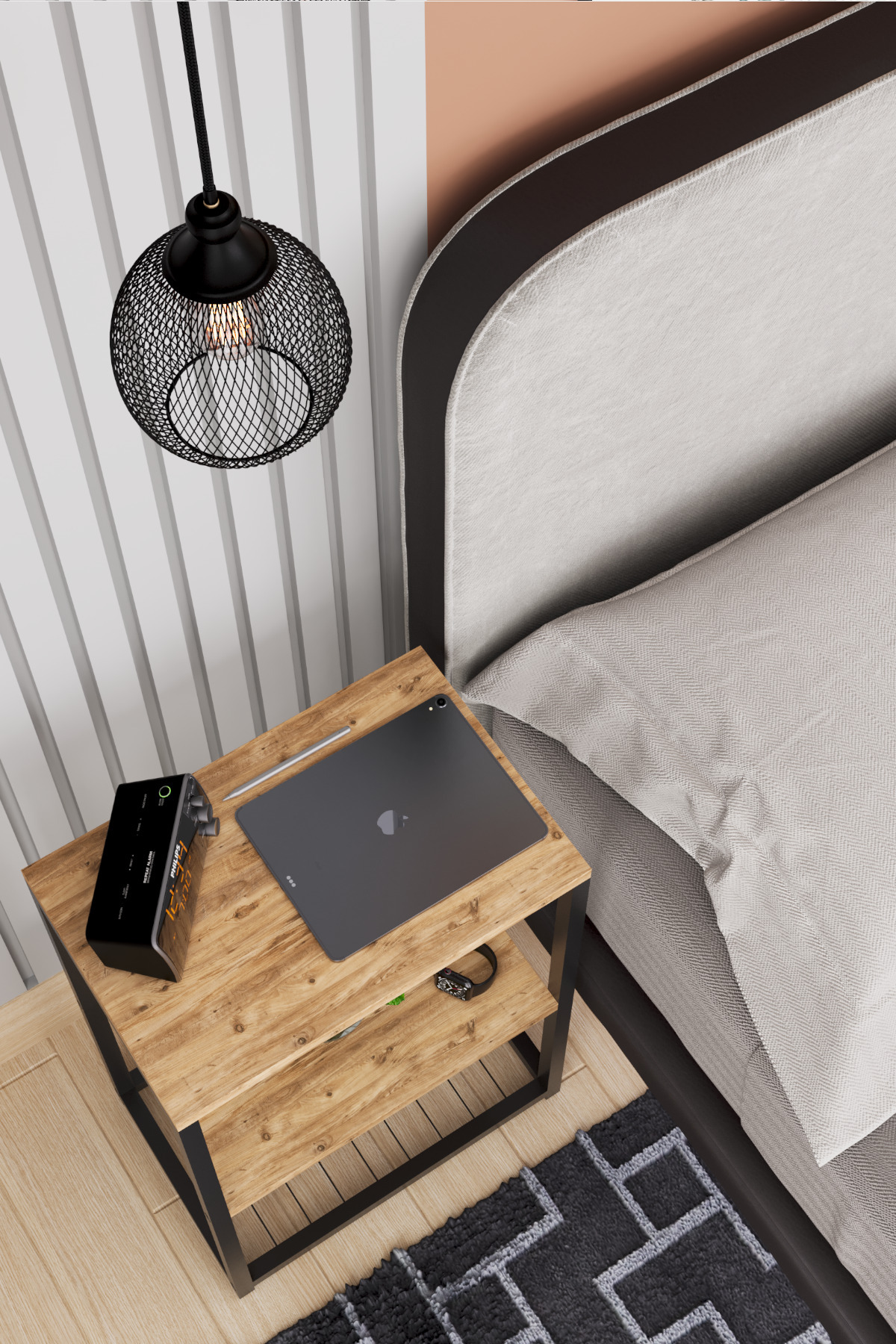 Metal Ayaklı ve Ahşap Raflı Dekoratif Komodin Metal Ayaklı ve Ahşap Raflı Dekoratif Komodin KM4 تک سایز