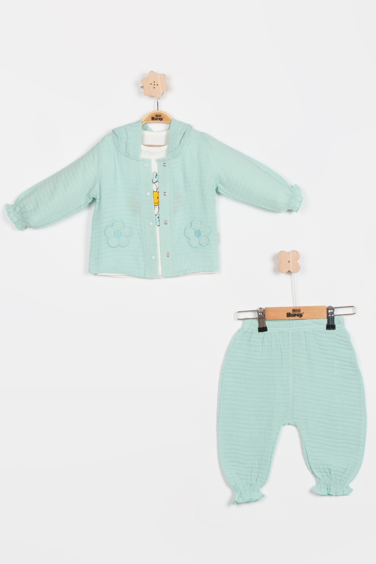 Pastel Renkli Müslin 3'lü Bebek Takımı (9-12-18 Ay) %100 Pamuklu Hırkalı Kız Bebek Seti Pastel Renkli Müslin 3'lü Bebek Takımı (9-12-18 Ay) %100 Pamuklu Hırkalı Kız Bebek Seti 1013 18 Ay