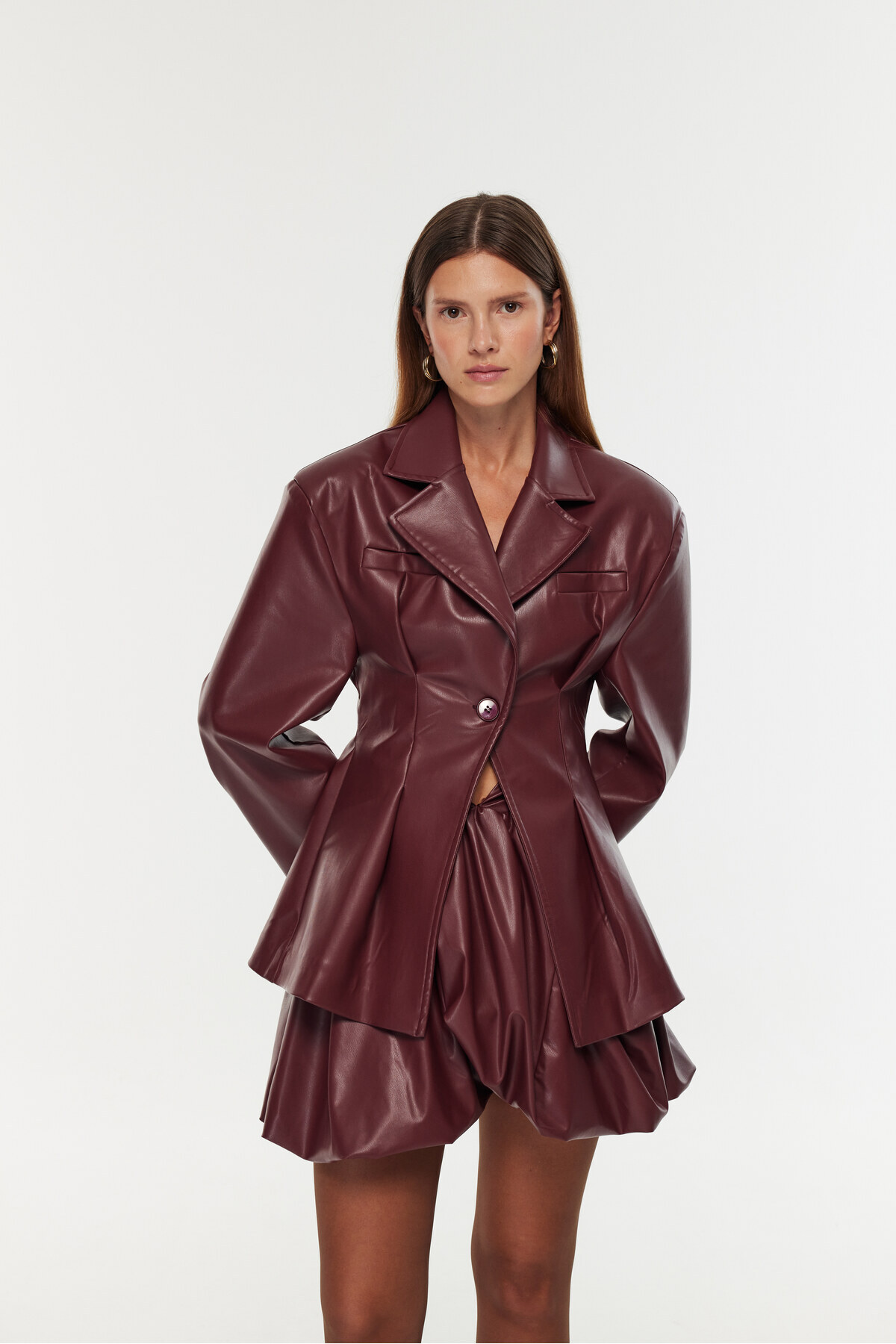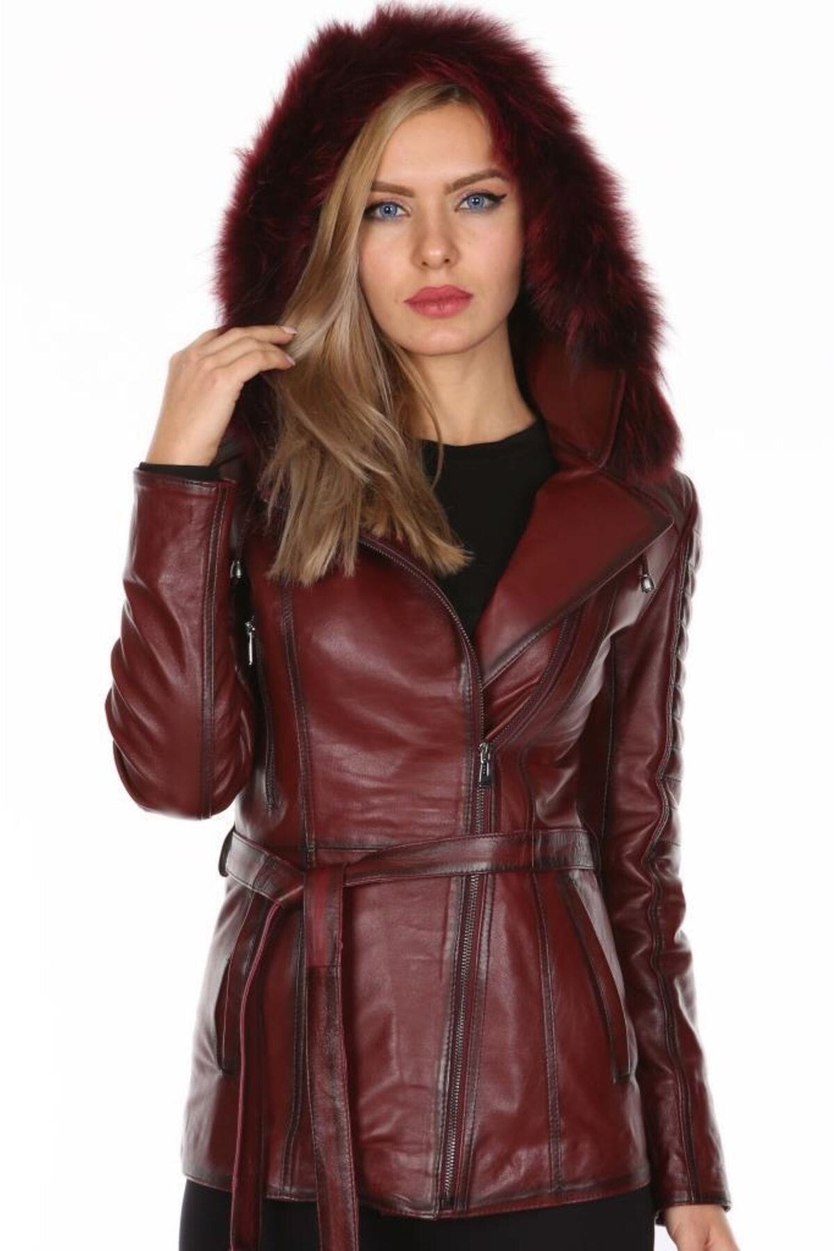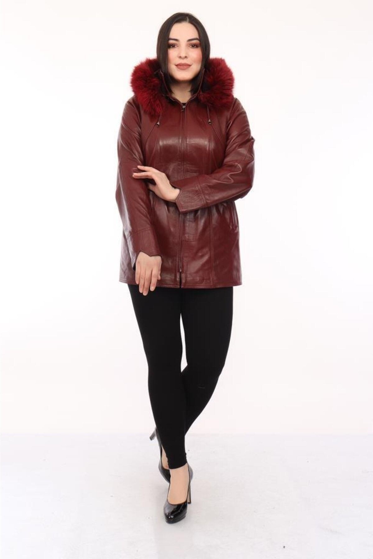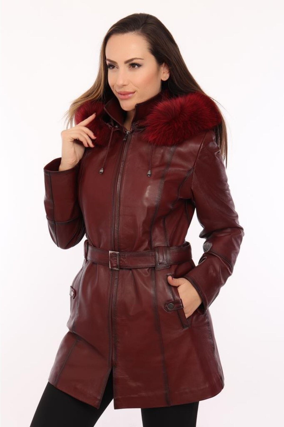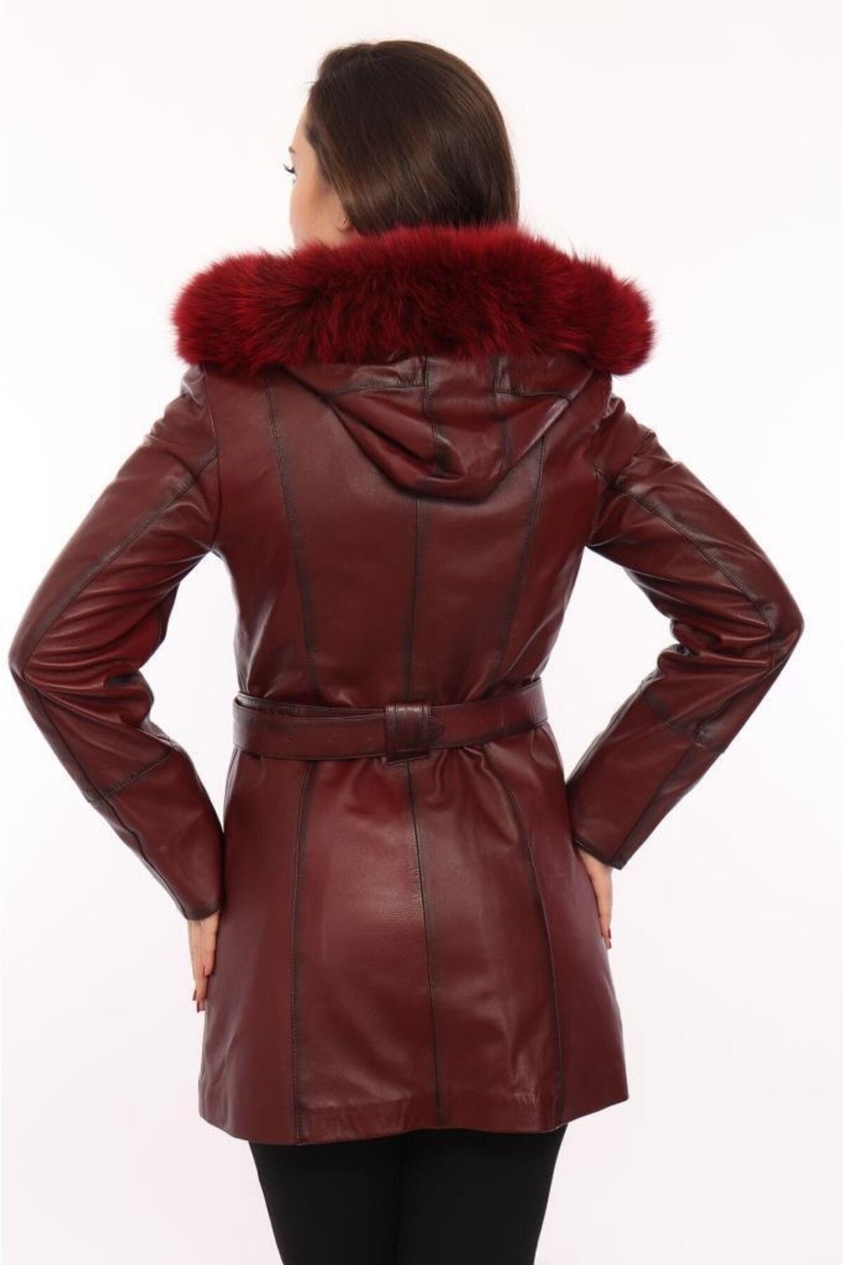 Hakiki Kuzu Derisi Fermuarlı Bordo Kemerli Kadın Ceket Bordo Hakiki Kuzu Derisi Fermuarlı Bordo Kemerli Kadın Ceket Bordo dw-04-43-31 3XL