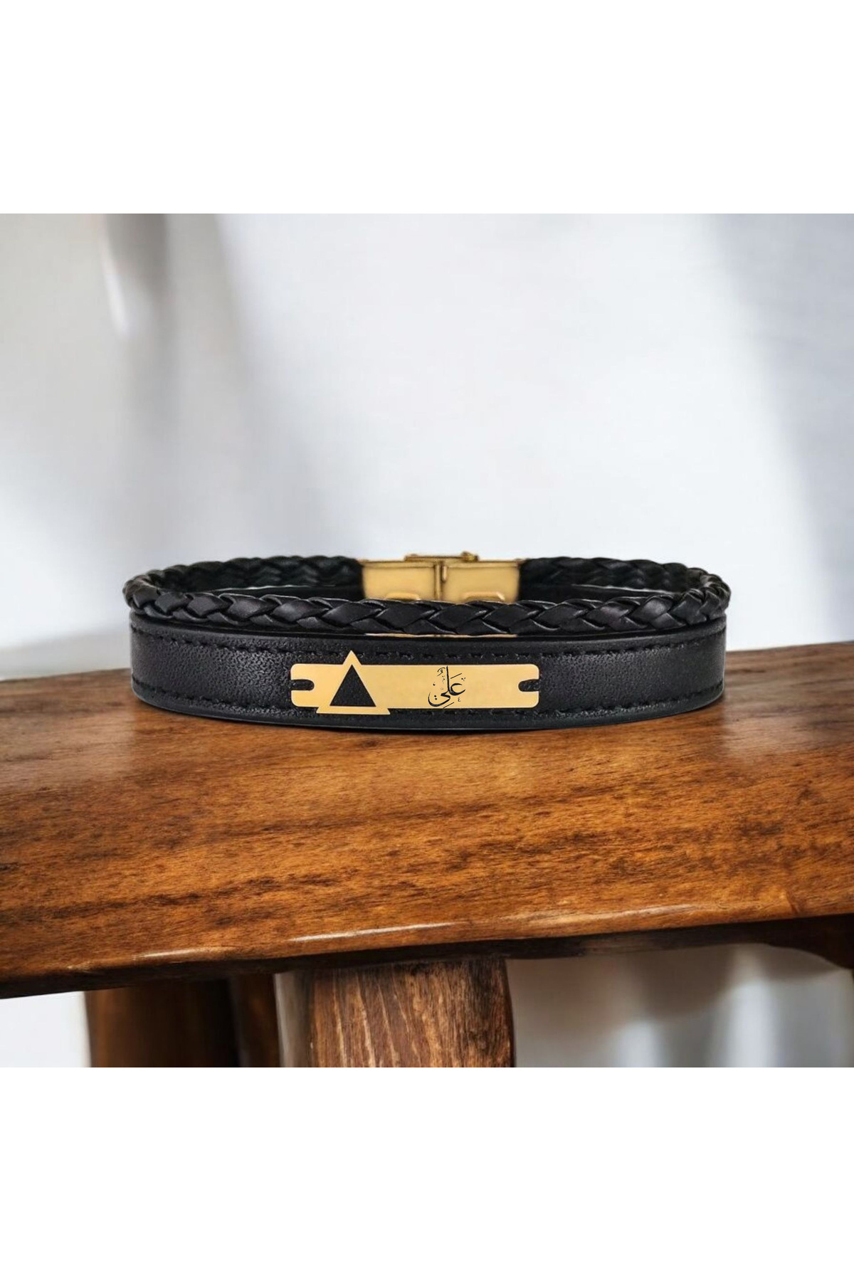 Altın Plakalı 14 Ayar Erkeklere Derili Üçgen Detaylı Dikdörtgenli Sembol Bilekliği-390sembol-siyah Altın Plakalı 14 Ayar Erkeklere Derili Üçgen Detaylı Dikdörtgenli Sembol Bilekliği-390sembol-siyah 390-siyadortdari-lumg-MO3 22 cm
