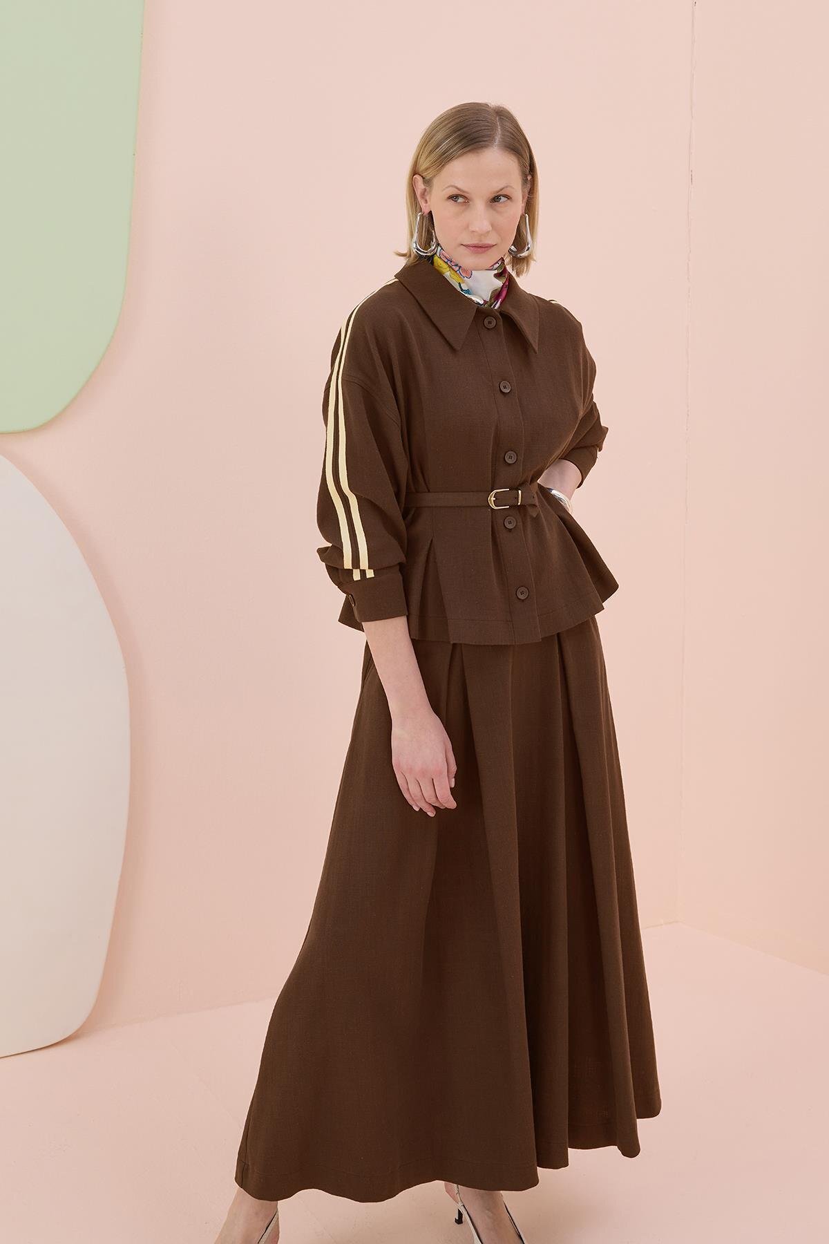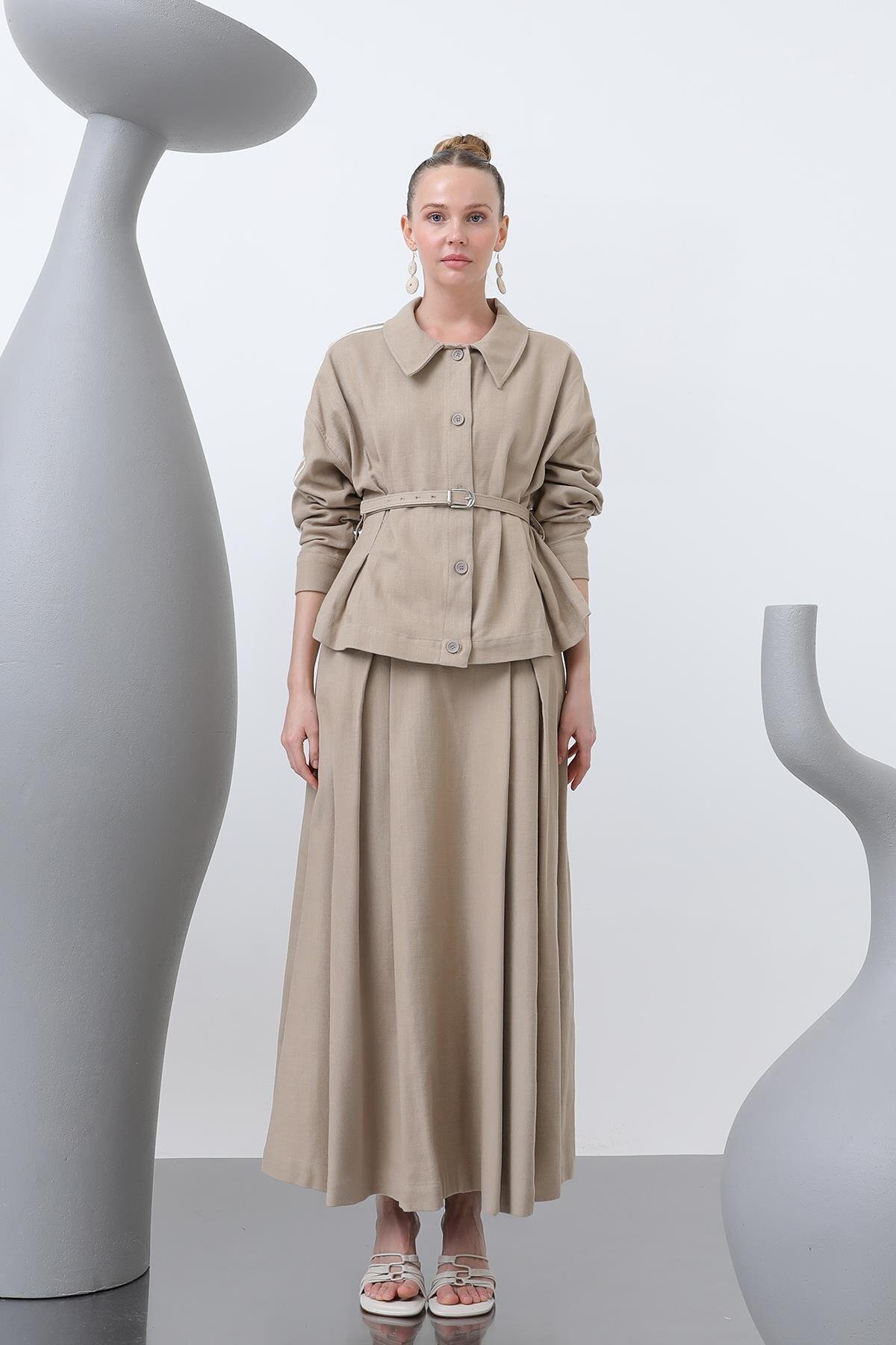 Kadın Beli Kemerli Etekli Takım - 14314TKS - MINK Kadın Beli Kemerli Etekli Takım - 14314TKS - MINK 25S-14314TKS L