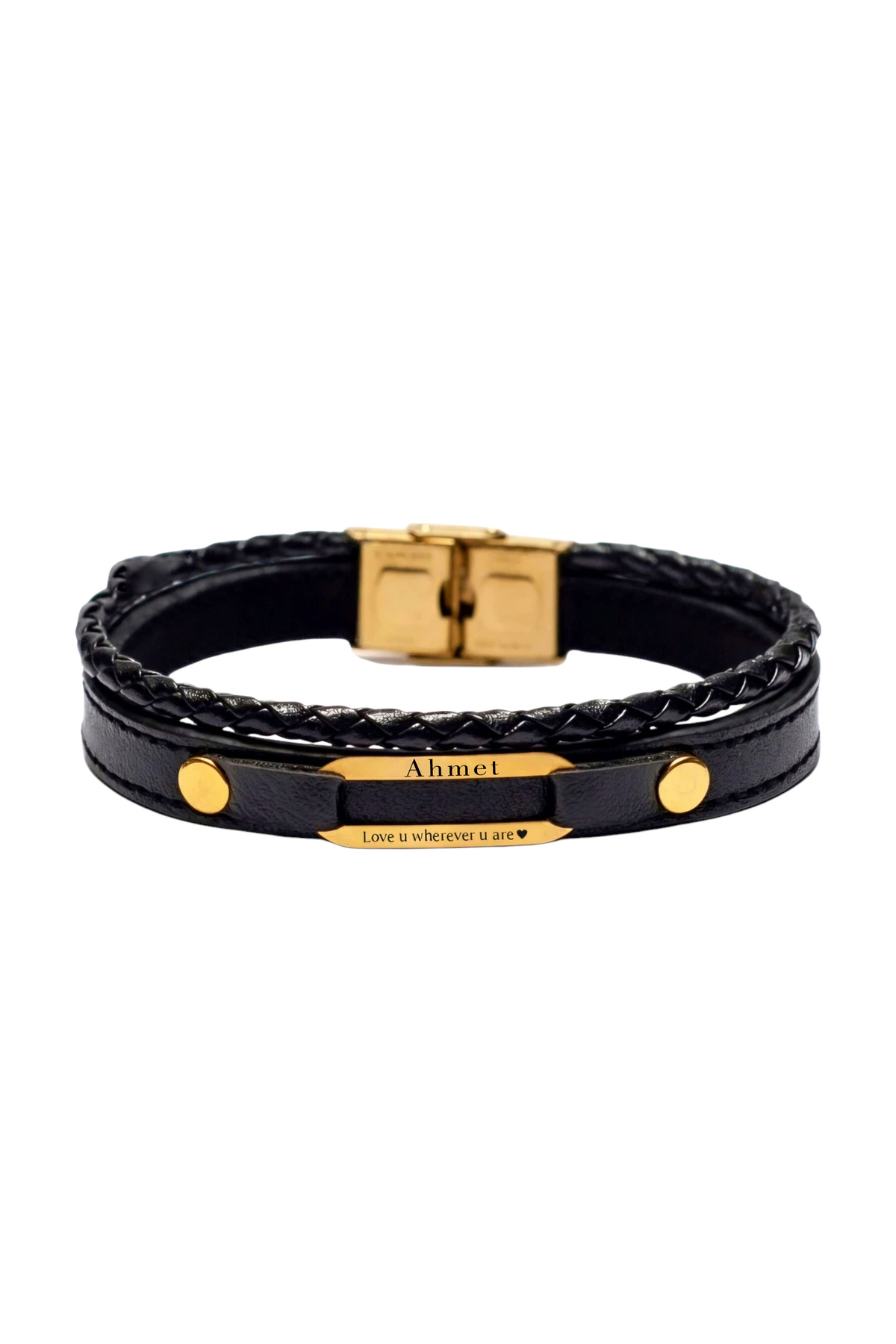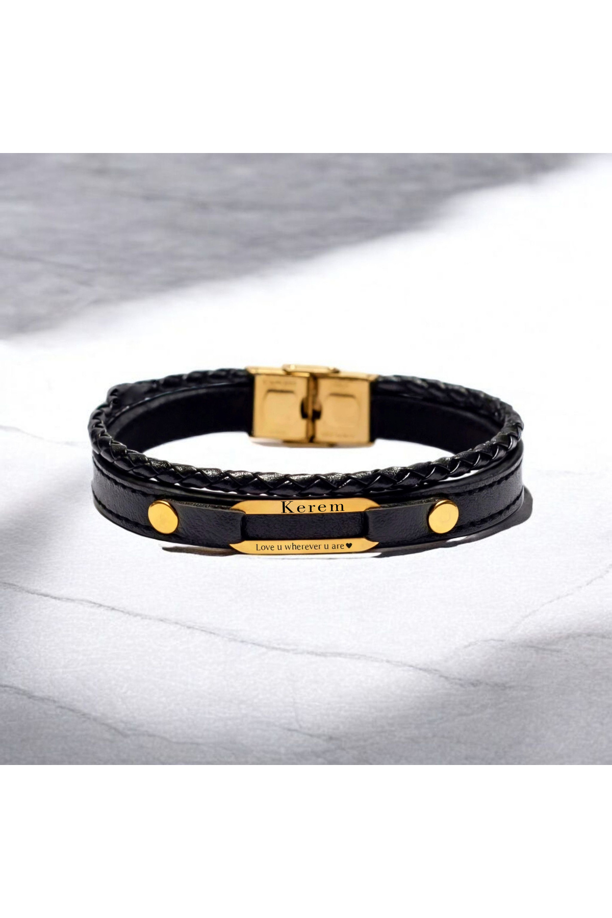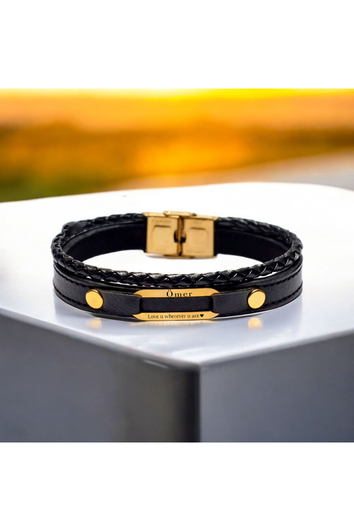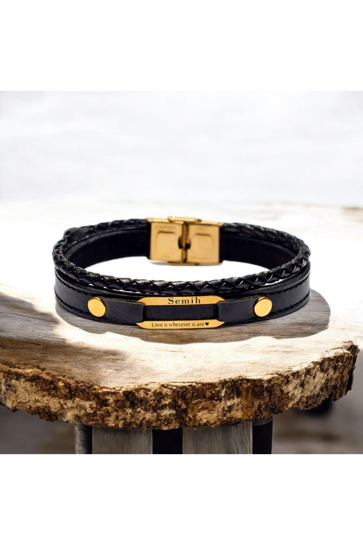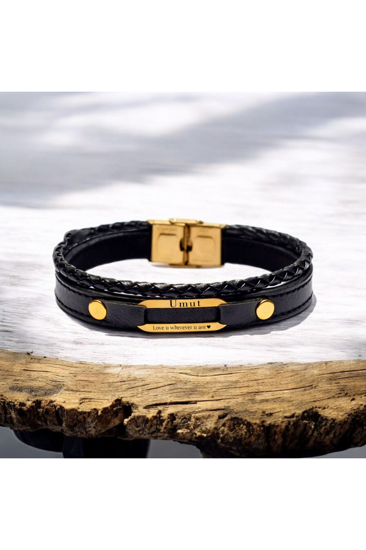 Altın Plakalı 14 Ayar Aşkı Yansıtan Oval Motifli Derili Erkeklere Özel İsim Bilekliği-391isim-siyah Altın Plakalı 14 Ayar Aşkı Yansıtan Oval Motifli Derili Erkeklere Özel İsim Bilekliği-391isim-siyah 391-siyadortderi-mg-MO1 22 cm