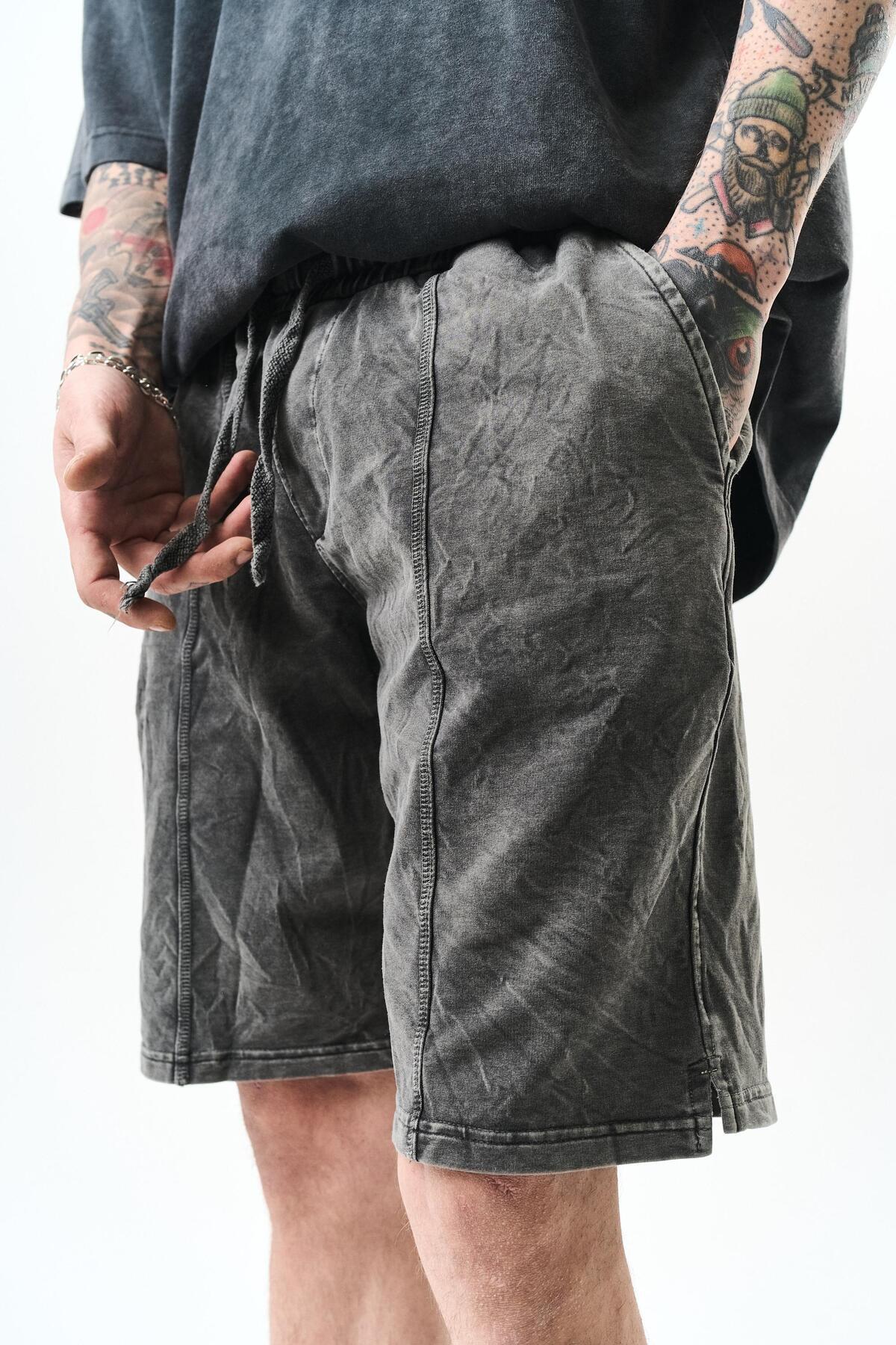 Erkek Ön Nakış Detaylı Bel Lastikli Şort Siyah Yıkama Erkek Ön Nakış Detaylı Bel Lastikli Şort Siyah Yıkama 5623106 XL