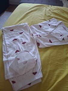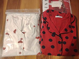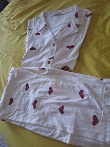 Kalp Desenli Pamuklu Likralı Düğmeli Pijama Takım Kalp Desenli Pamuklu Likralı Düğmeli Pijama Takım 903 2XL