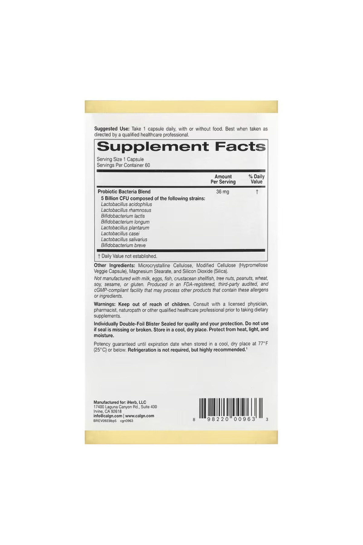 California Gold LactoBif 5, Probiotics 5 Lactobacilli 3 Bifidobacteria, 5 Billion CFU 60 Vegan Caps California Gold LactoBif 5, Probiotics 5 Lactobacilli 3 Bifidobacteria, 5 Billion CFU 60 Vegan Caps CALİFORNİAPROBİCF560 تک سایز