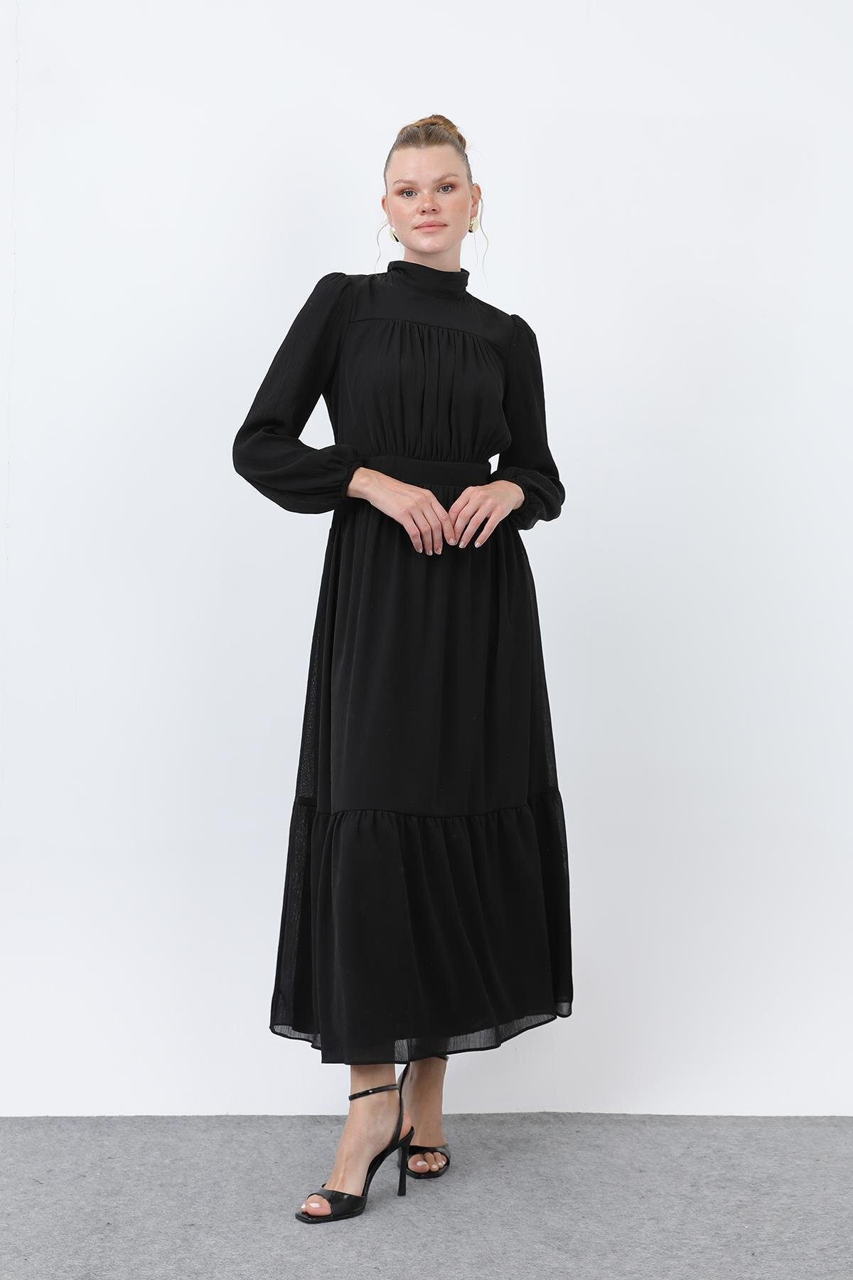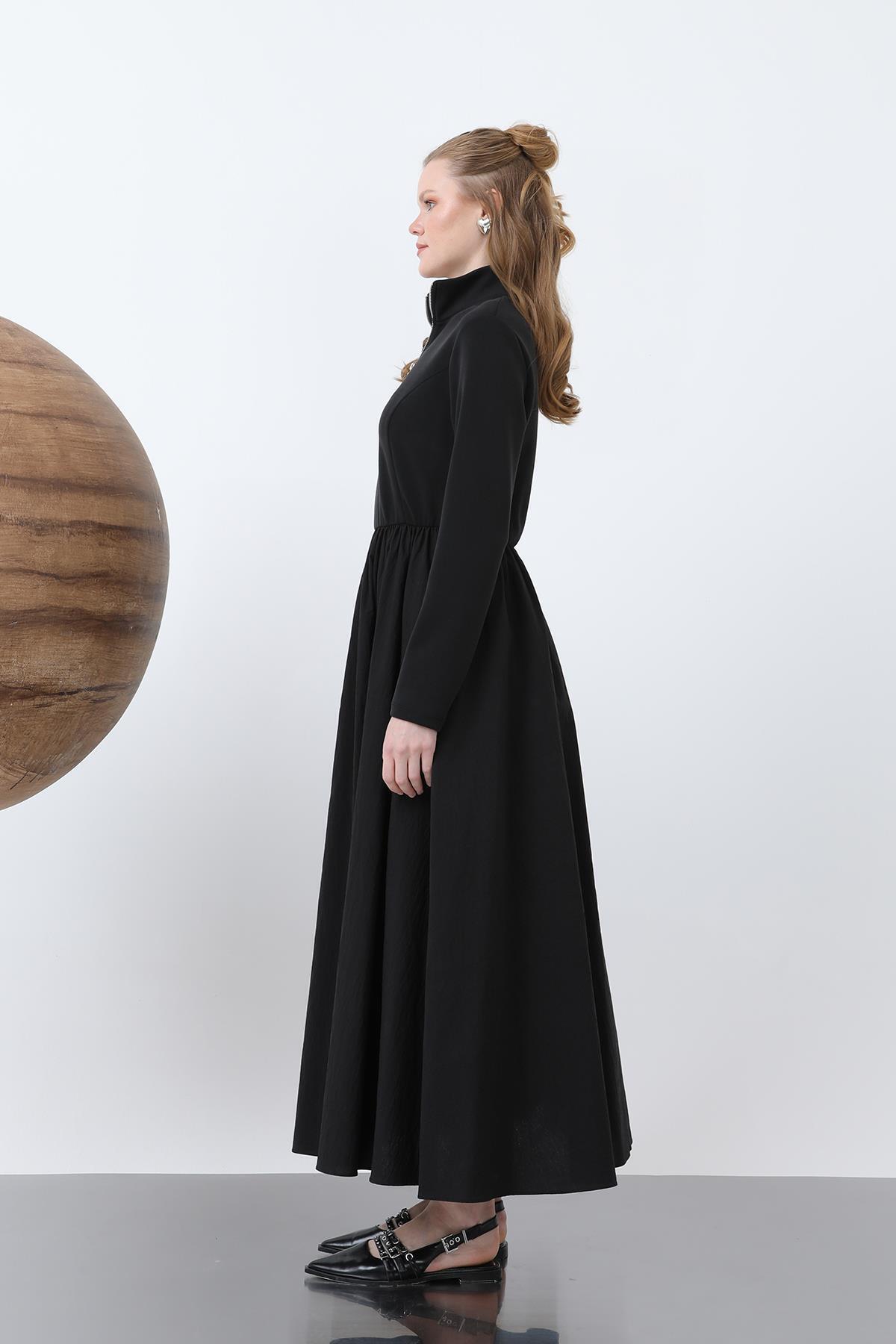 Kadın Beli Büzgülü Yakası Fermuar Detaylı Elbise - 20607ELB - Siyah Kadın Beli Büzgülü Yakası Fermuar Detaylı Elbise - 20607ELB - Siyah 25S-20607ELB L