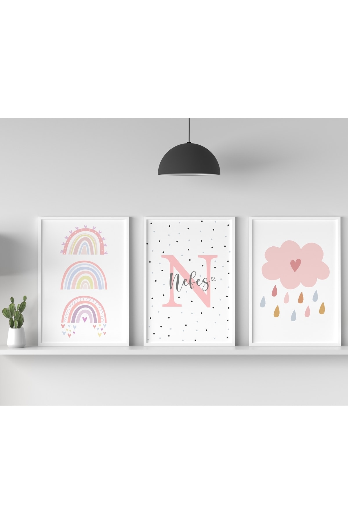 3'lü Pudra Pembesi, isime Özel Çocuk Ve Bebek Odası, Doğal ahşap veya Beyaz Çerçeveli Tablo 3'lü Pudra Pembesi, isime Özel Çocuk Ve Bebek Odası, Doğal ahşap veya Beyaz Çerçeveli Tablo 0270051PT 30 x 40