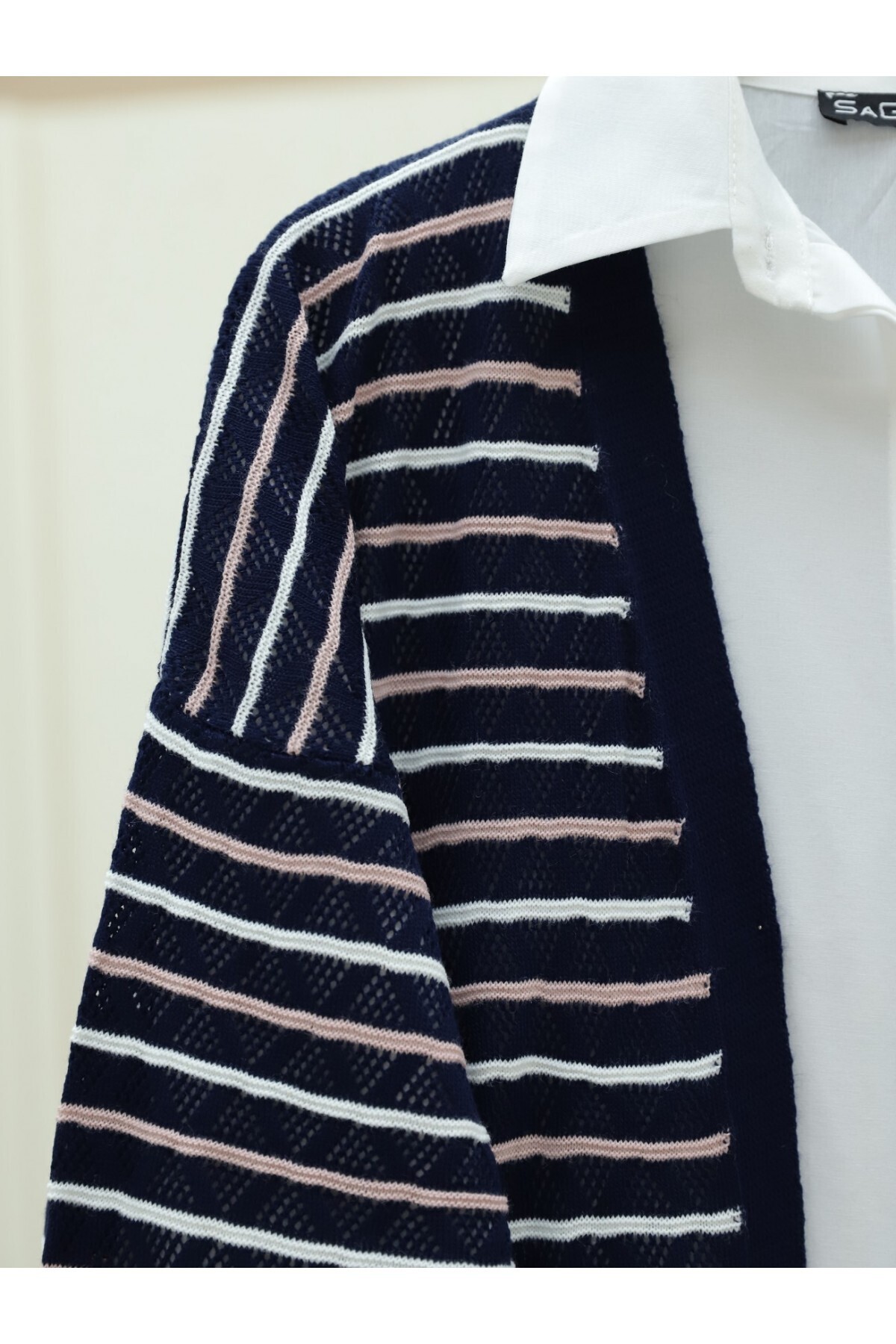 Renkli Çizgili Fileli Triko Hırka -Laci Renkli Çizgili Fileli Triko Hırka -Laci TY109-9889 Standart