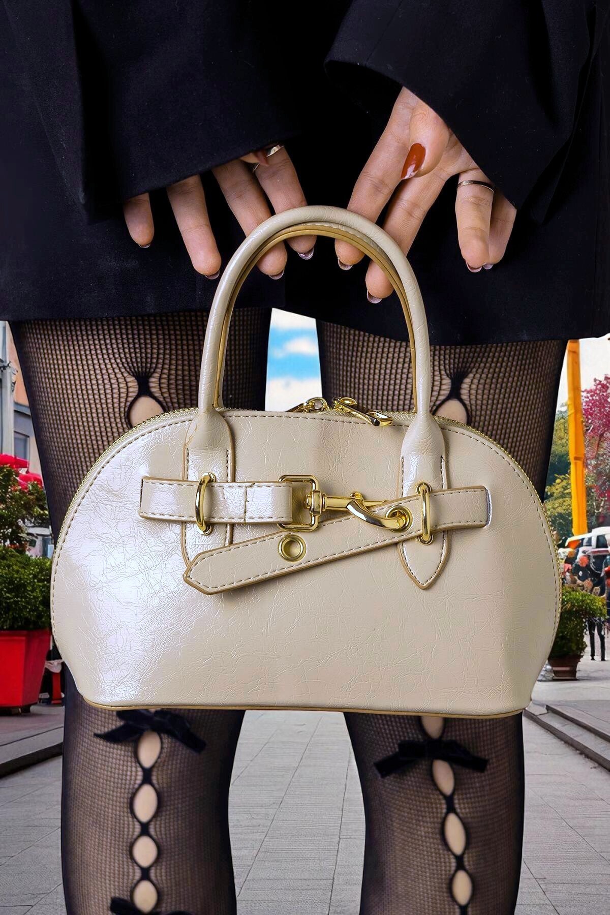 Kadın Krem Rugan El ve Omuz Çantası. RY413 Kadın Krem Rugan El ve Omuz Çantası. RY413 تک سایز