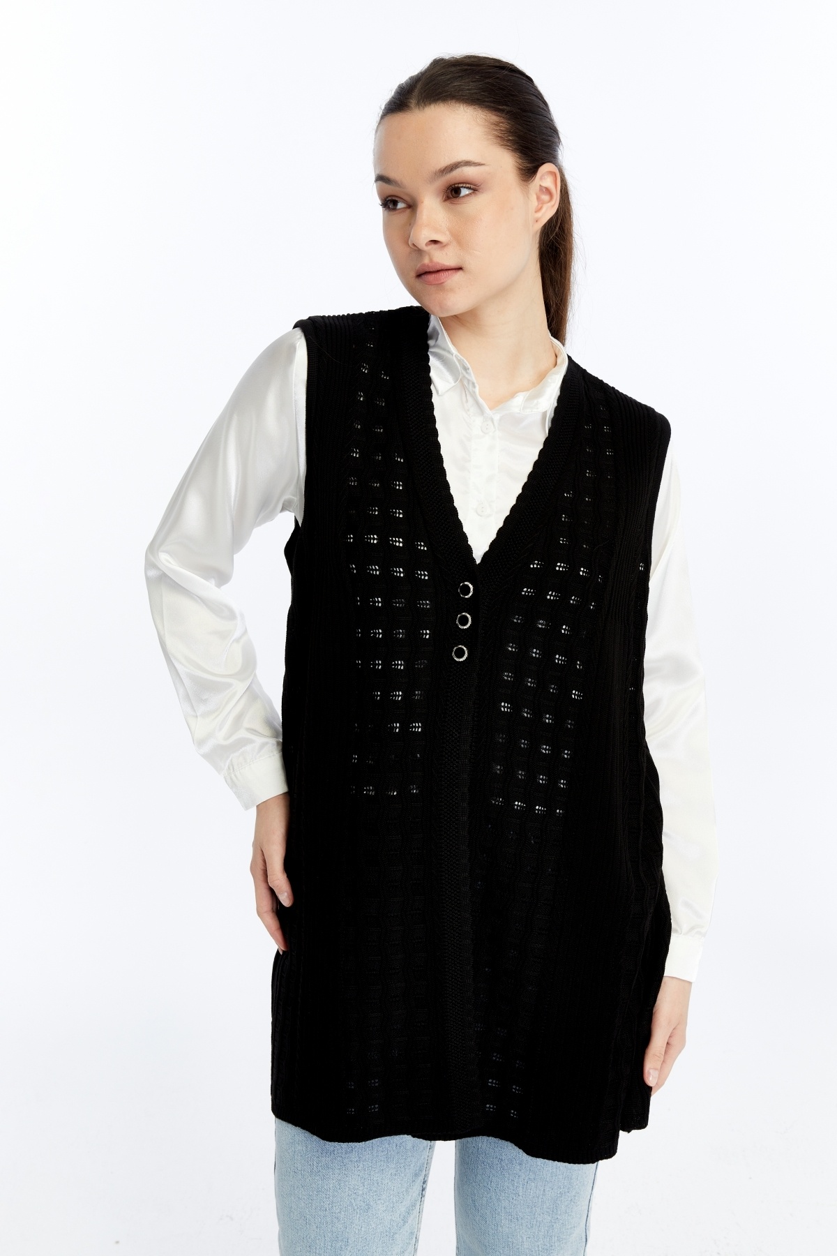 Kadın Standart V Yaka Şerit Detaylı Cepli Anne Yelek Kadın Standart V Yaka Şerit Detaylı Cepli Anne Yelek 1015-YLK 2XL
