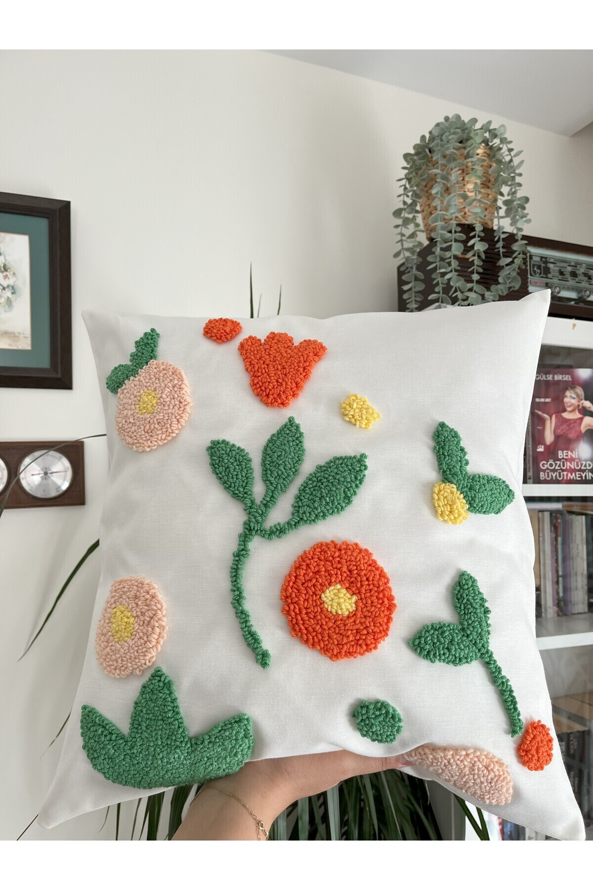 El İşlemeli Renkli Çiçek Desenli Dekoratif kırlent kılıfı El İşlemeli Renkli Çiçek Desenli Dekoratif kırlent kılıfı dekor16 45 x 45