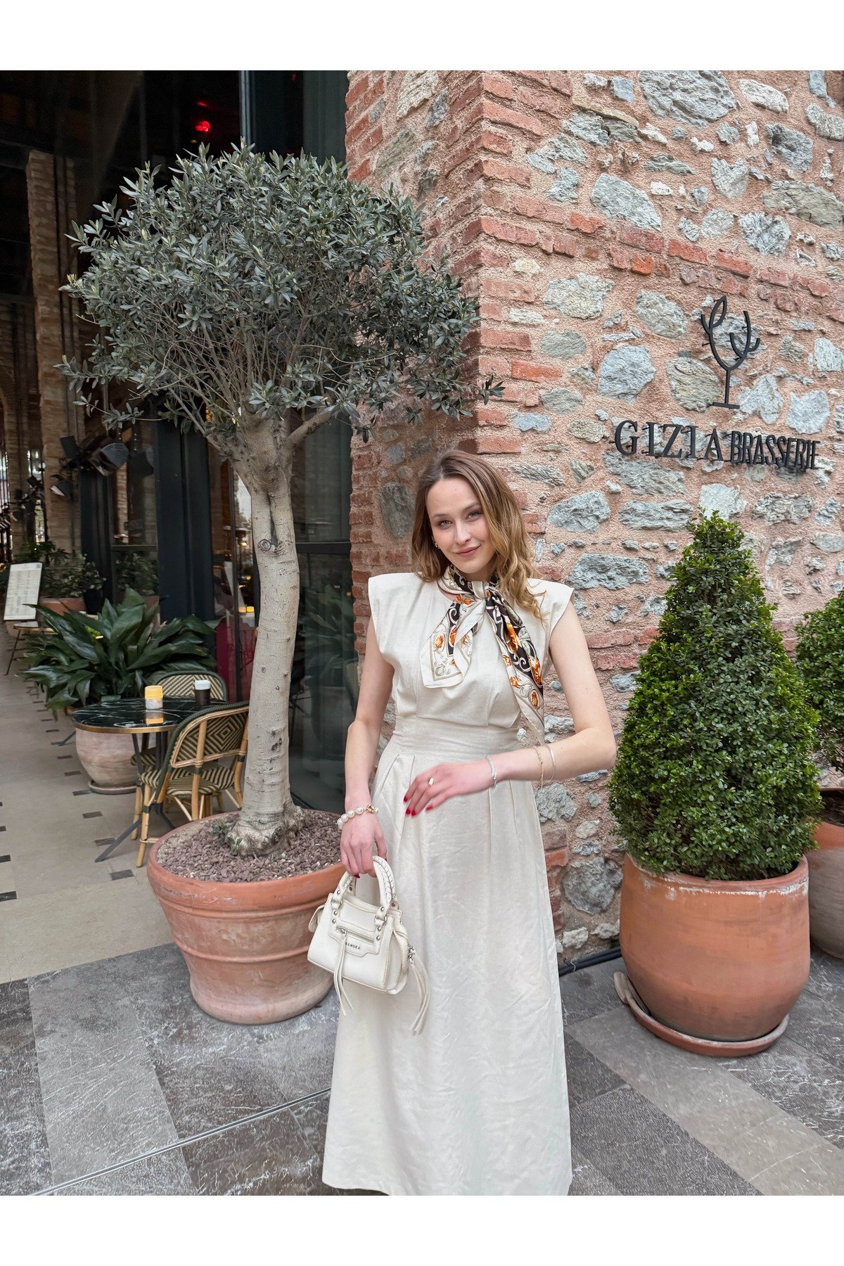 Vatka Detaylı Keten Belden Oturtma Detaylı Elbise Vatka Detaylı Keten Belden Oturtma Detaylı Elbise ketenelbise L