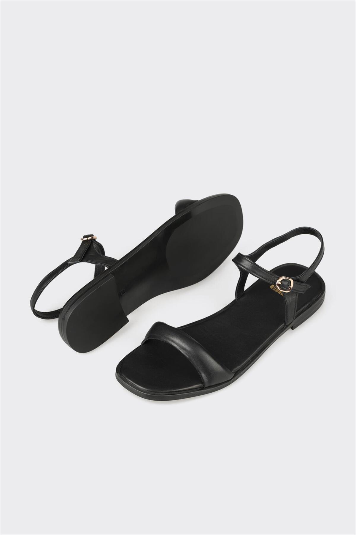 Siyah Deri Kadın Düz Sandalet Siyah Deri Kadın Düz Sandalet GILEKI 40