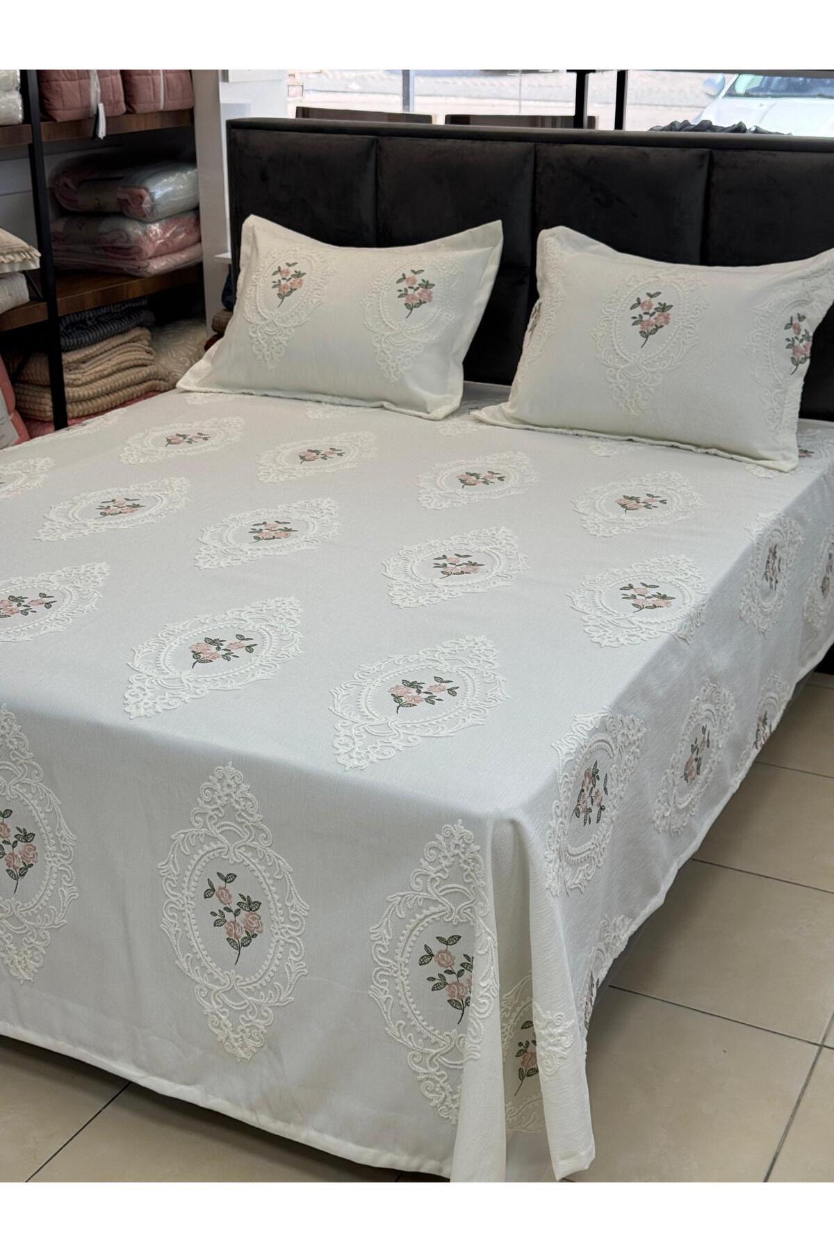 Ponponlu Çift Kişilik Krem Yatak Örtüsü 250/260 Cm Ponponlu Çift Kişilik Krem Yatak Örtüsü 250/260 Cm K-HOME-BRRY-86 تک سایز