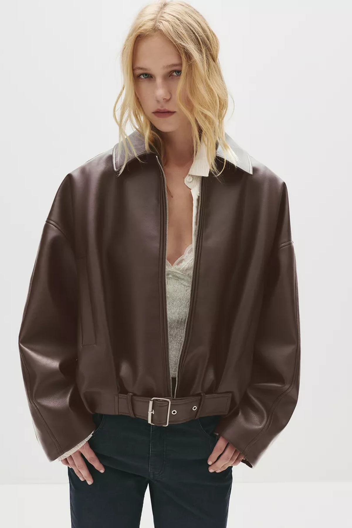 Yeni Sezon Suni Oversize Bomber Deri Ceket Yeni Sezon Suni Oversize Bomber Deri Ceket YR3133 L