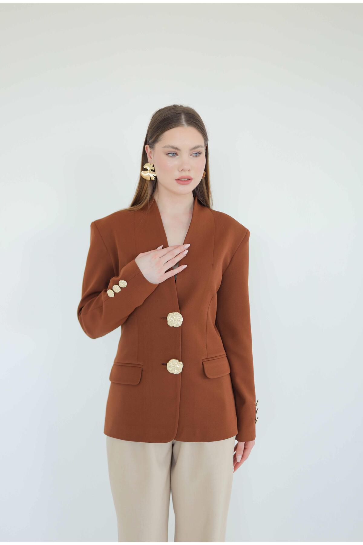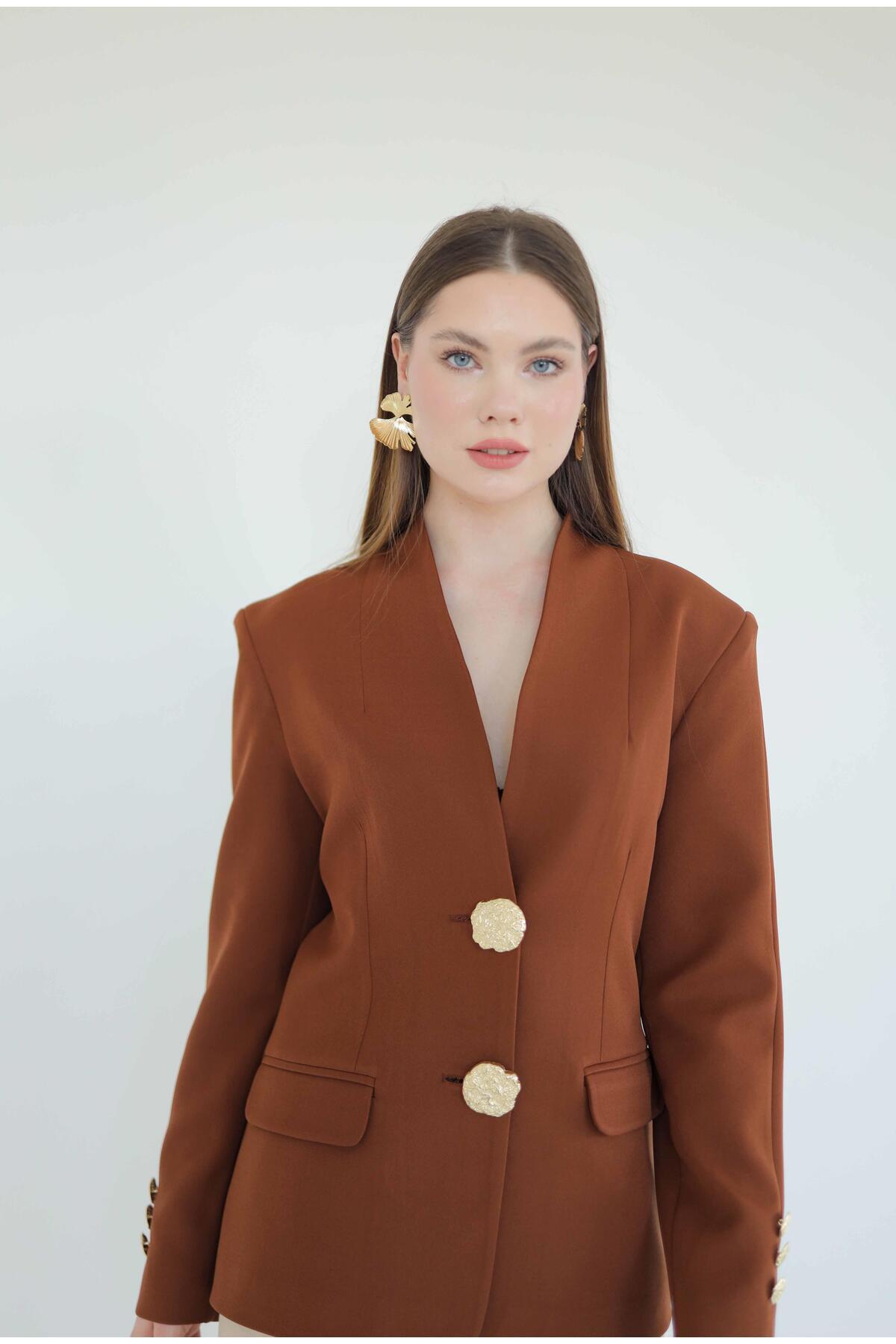 Gold Düğmeli Blazer Ceket Taba Gold Düğmeli Blazer Ceket Taba Ceket-113 40/42