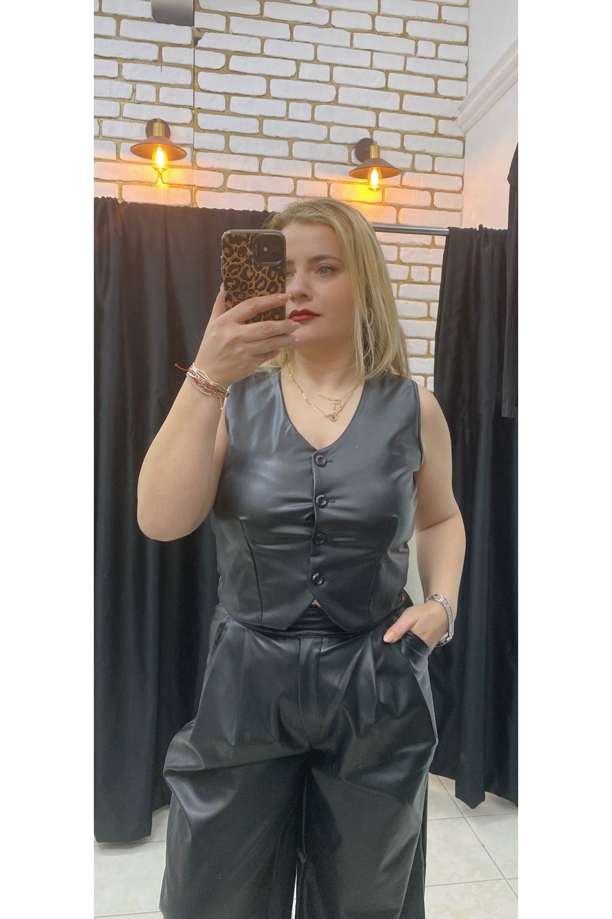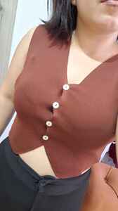 Kadın V Yaka Düğmeli Yazlık Crop Triko Yelek Kadın V Yaka Düğmeli Yazlık Crop Triko Yelek yelek1 S/M