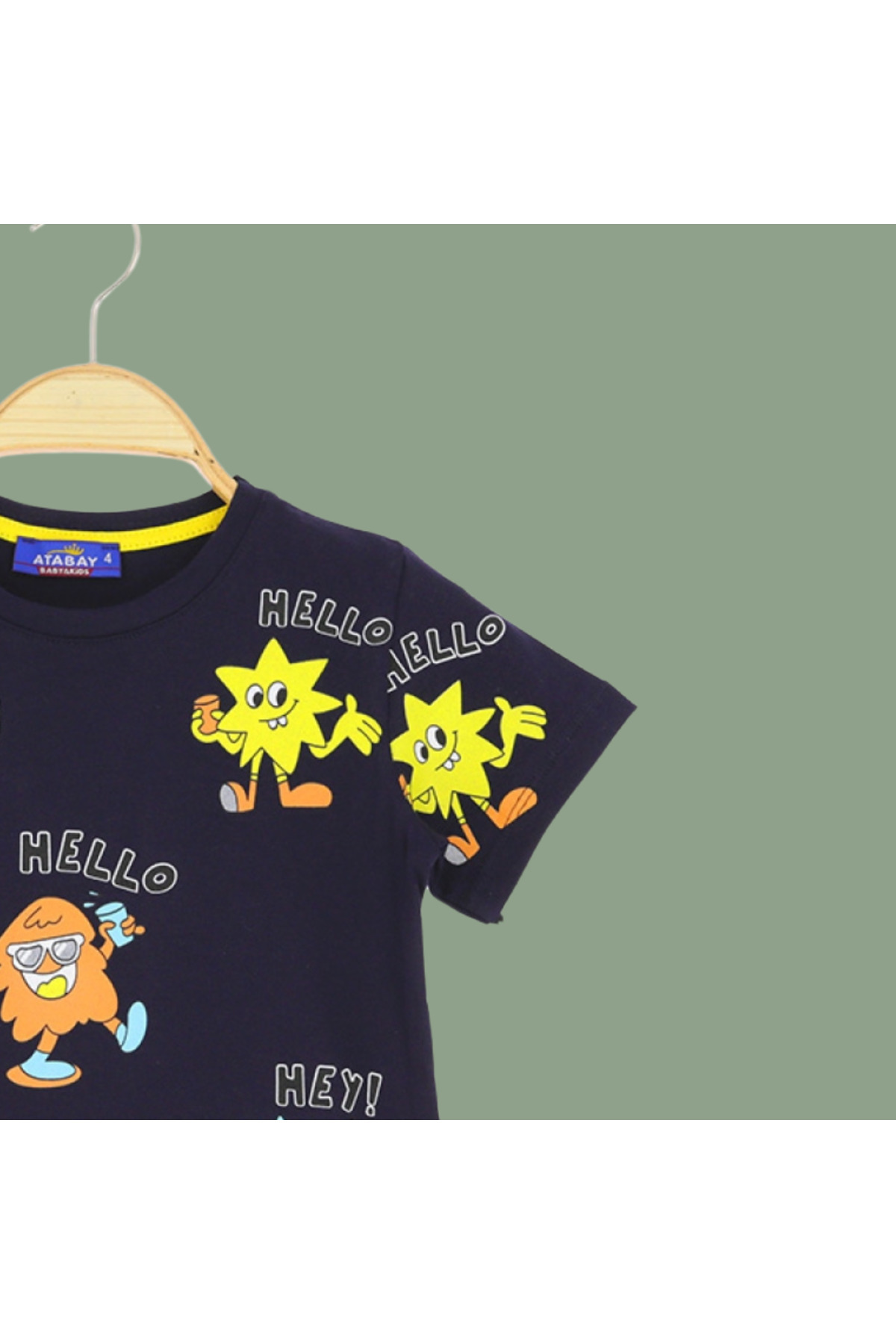 Hello Hey Sevimli Renkli Neşeli Baskılı Tshirt Mevsimlik Pamuklu Hello Hey Sevimli Renkli Neşeli Baskılı Tshirt Mevsimlik Pamuklu ATA30772 2-3 Yaş