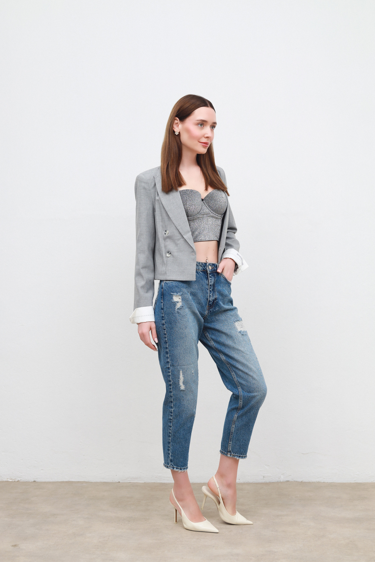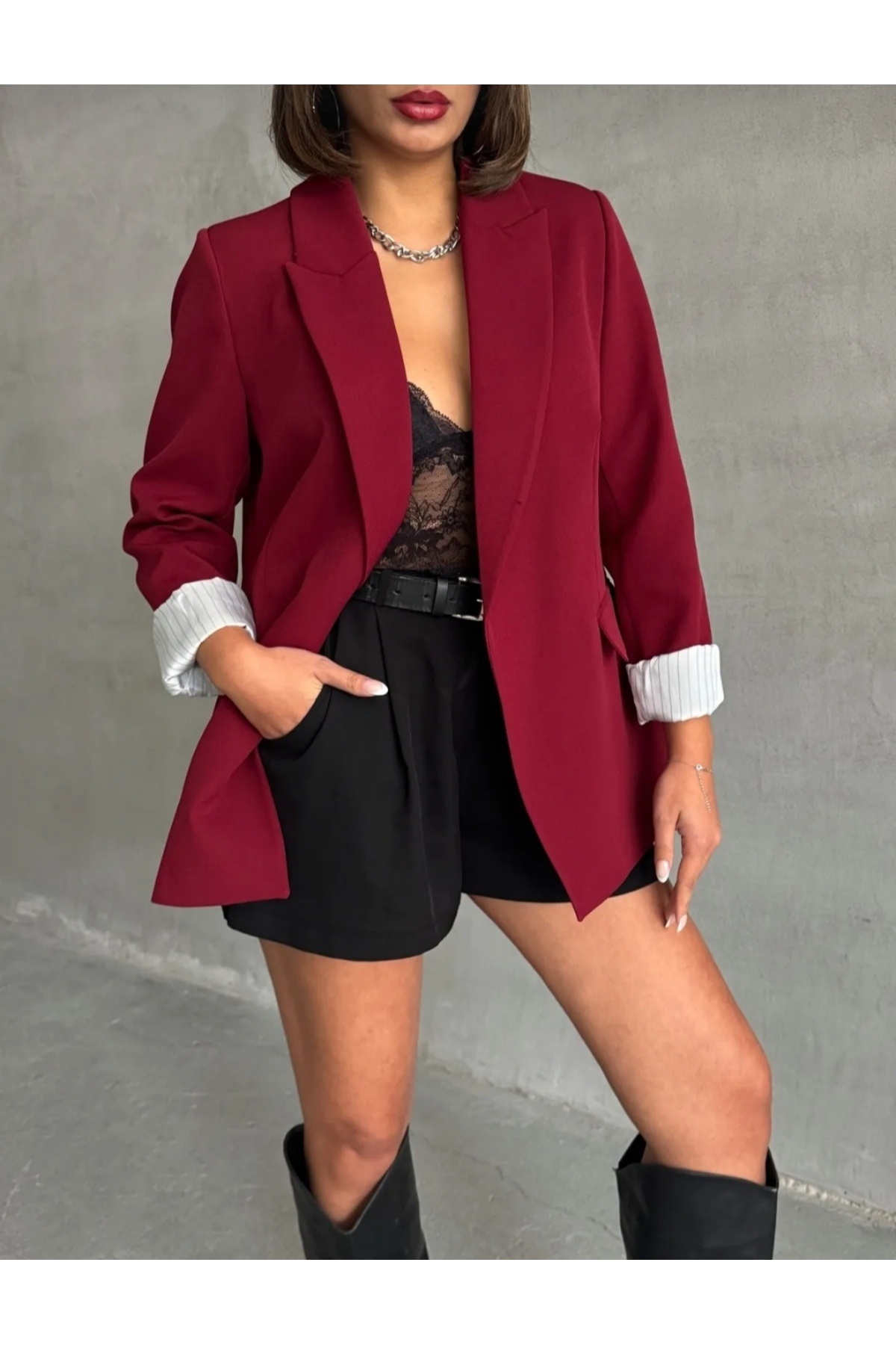 Kadın Katlanabilir Kol Astarı Çizgili Blazer Ceket Kadın Katlanabilir Kol Astarı Çizgili Blazer Ceket CTKCI8 42
