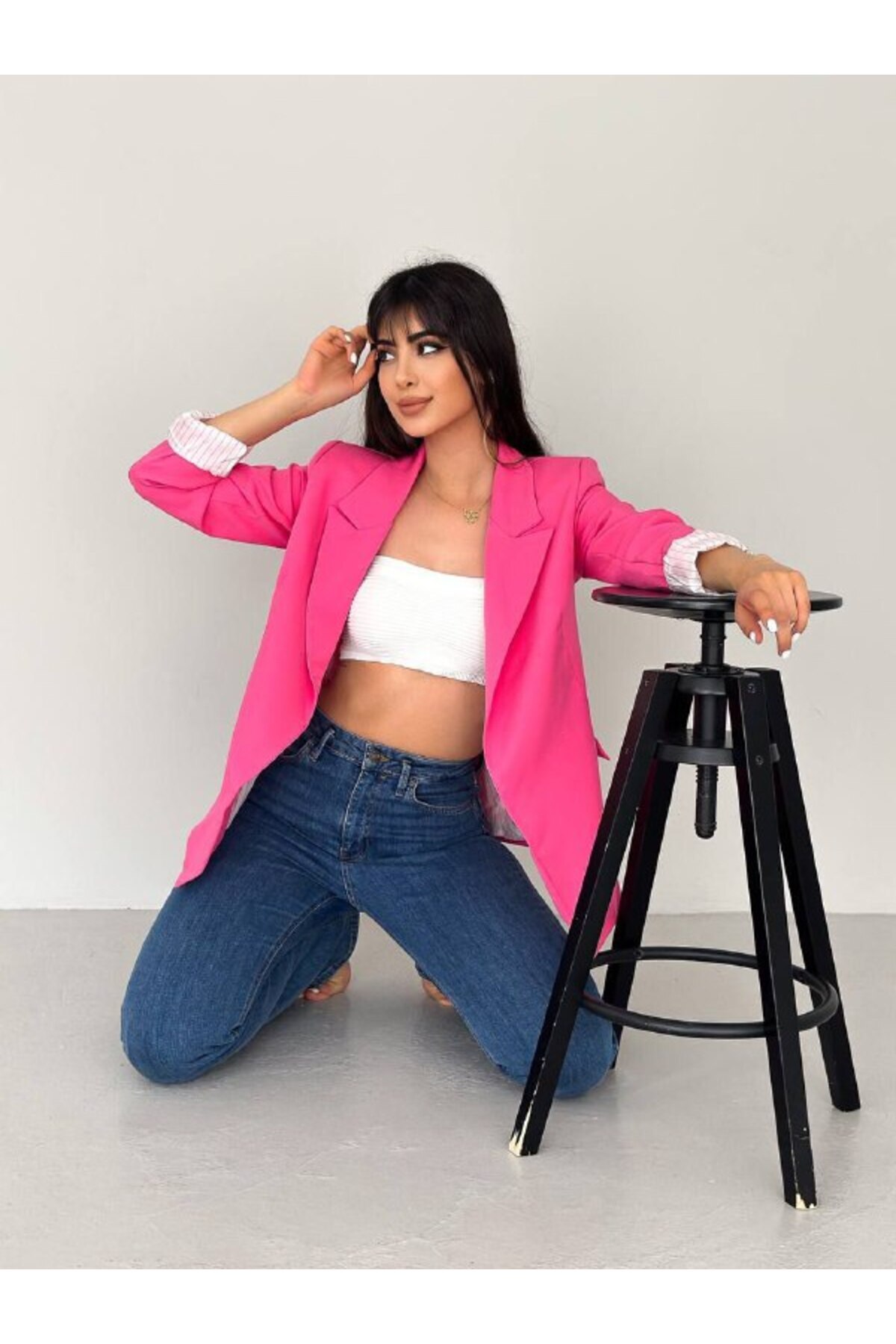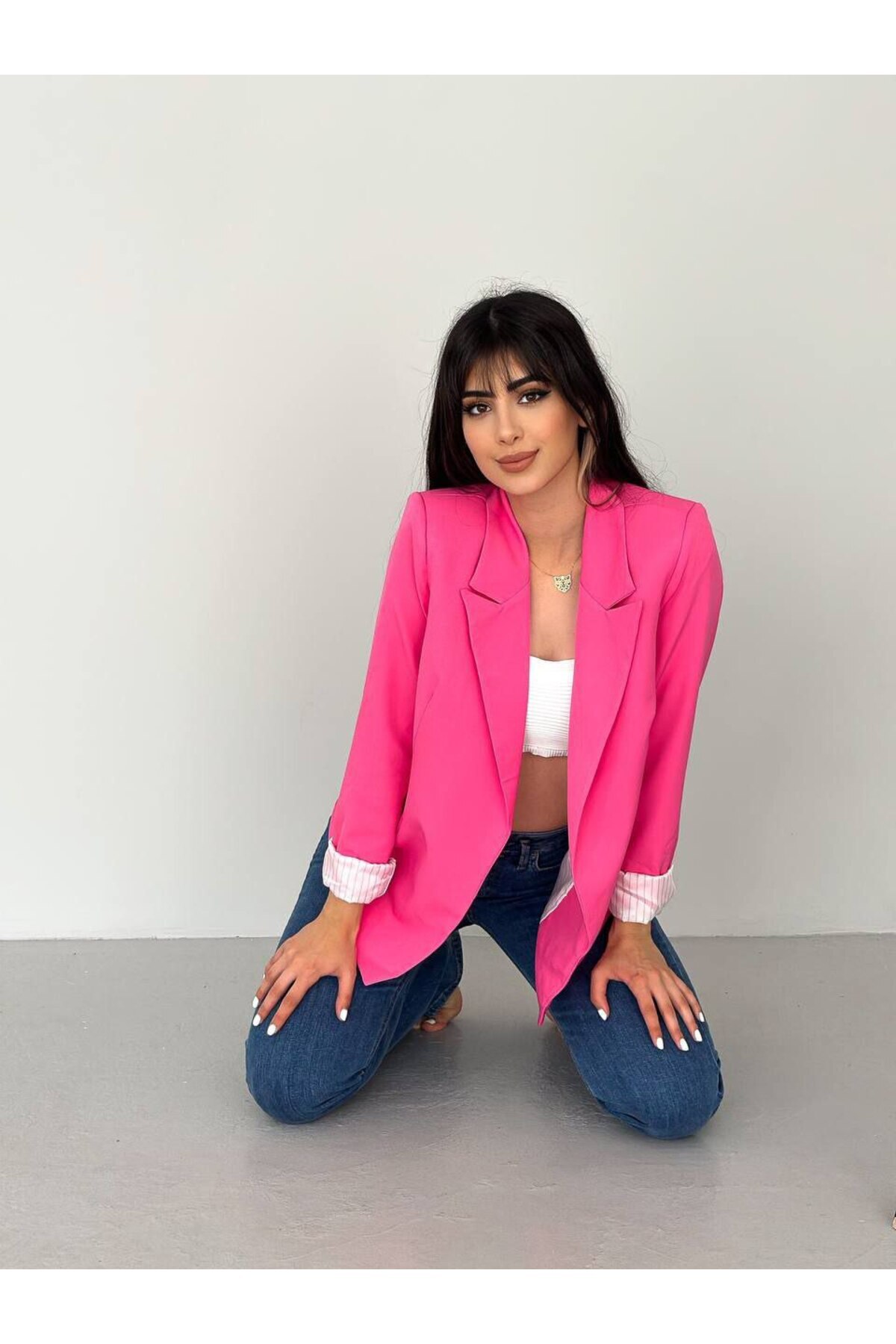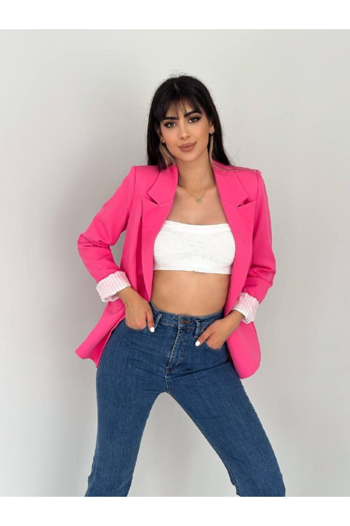 Kadın Katlanabilir Kol Astarı Çizgili Blazer Ceket Kadın Katlanabilir Kol Astarı Çizgili Blazer Ceket CTKCI8 42