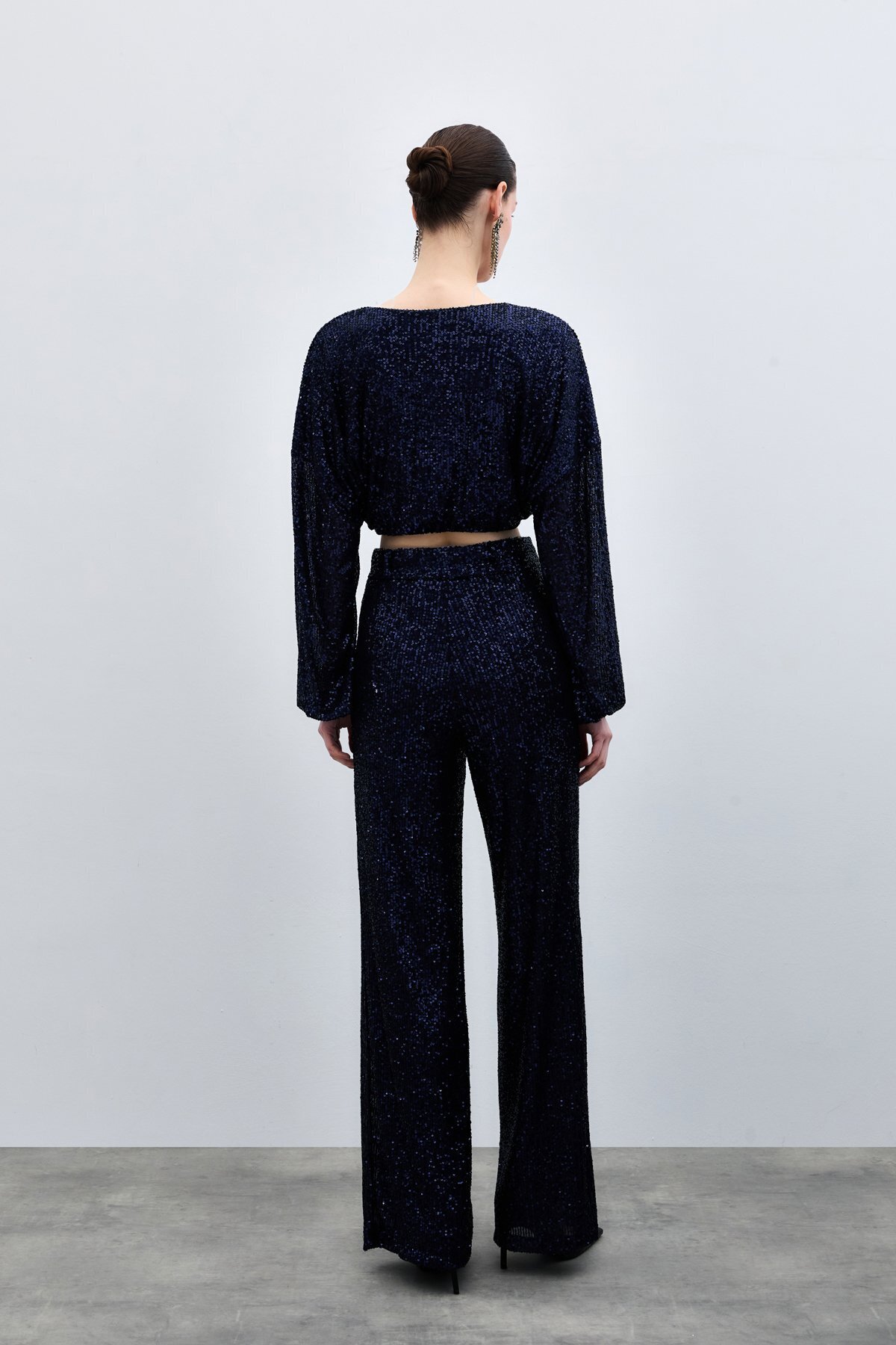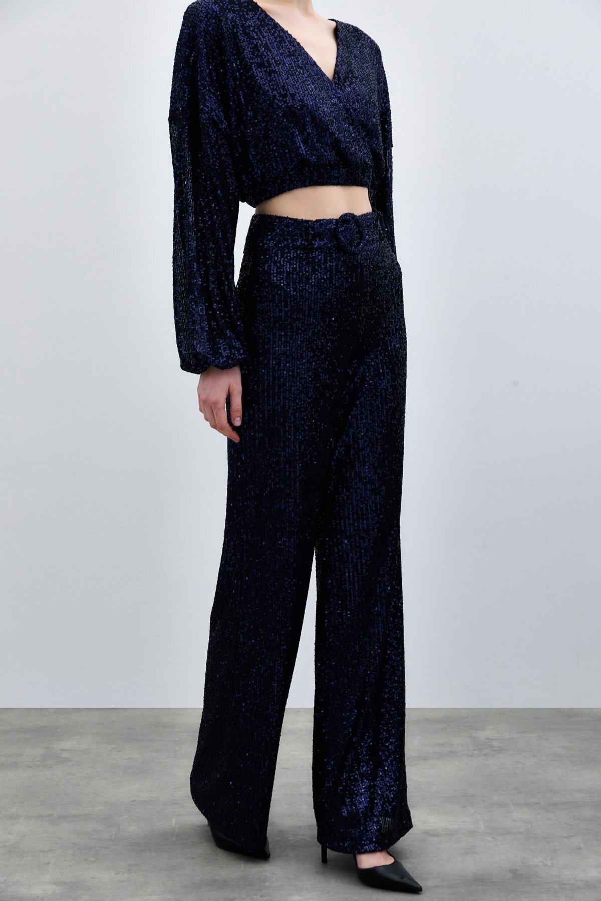 Kemerli Payet Pantolon - Lacivert Kemerli Payet Pantolon - Lacivert STN139KPA2089 42
