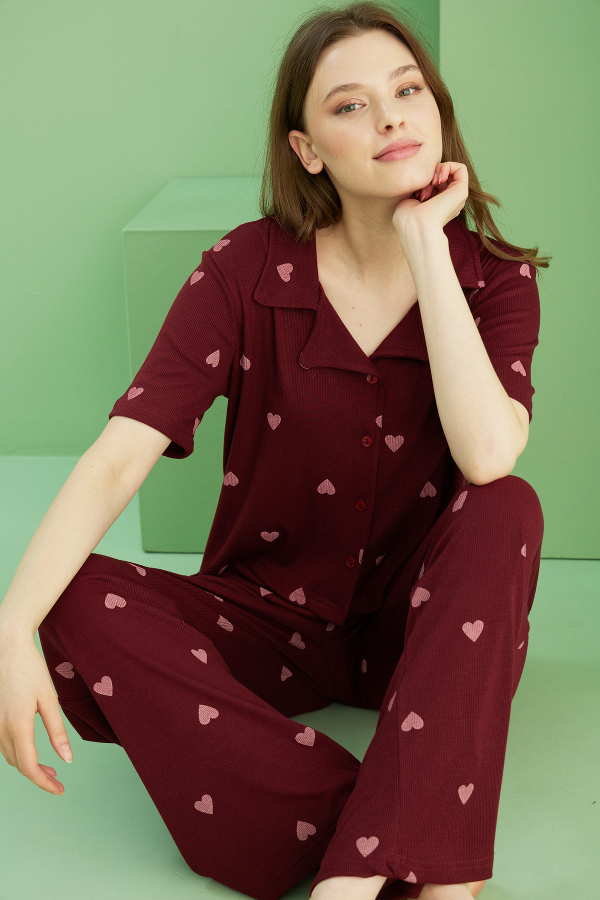 kırmızı siyah kalp desenli Pointel Ajurlu/Delikli Bisiklet Yaka Örme Pijama Takım kırmızı siyah kalp desenli Pointel Ajurlu/Delikli Bisiklet Yaka Örme Pijama Takım 7841 2XL