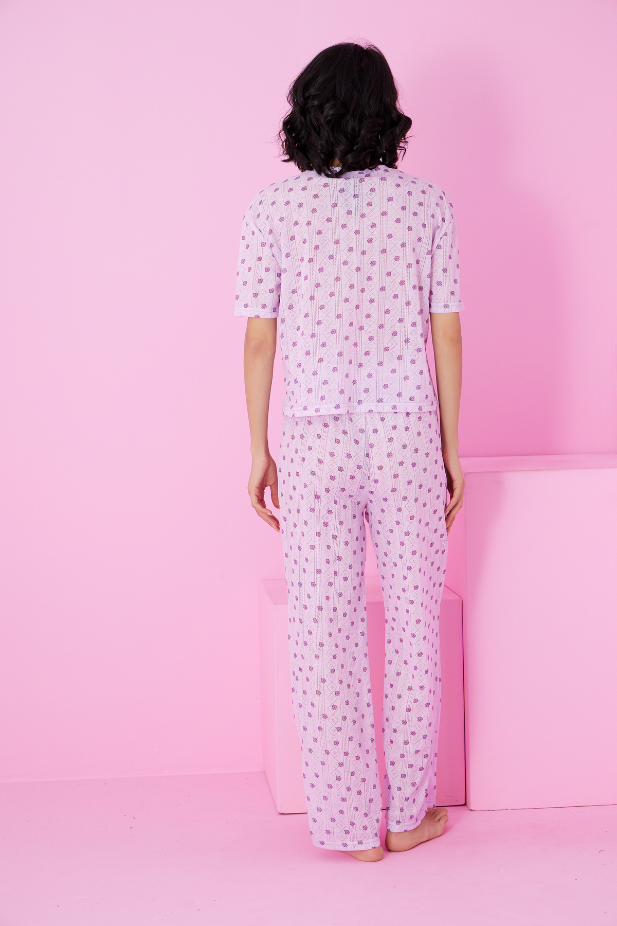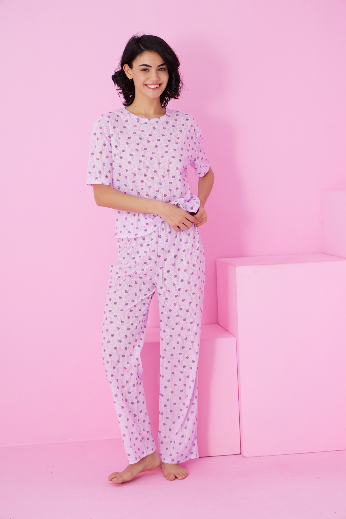 lila mor çiçek desenli Pointel Ajurlu/Delikli Bisiklet Yaka Örme Pijama Takım lila mor çiçek desenli Pointel Ajurlu/Delikli Bisiklet Yaka Örme Pijama Takım 7841 2XL