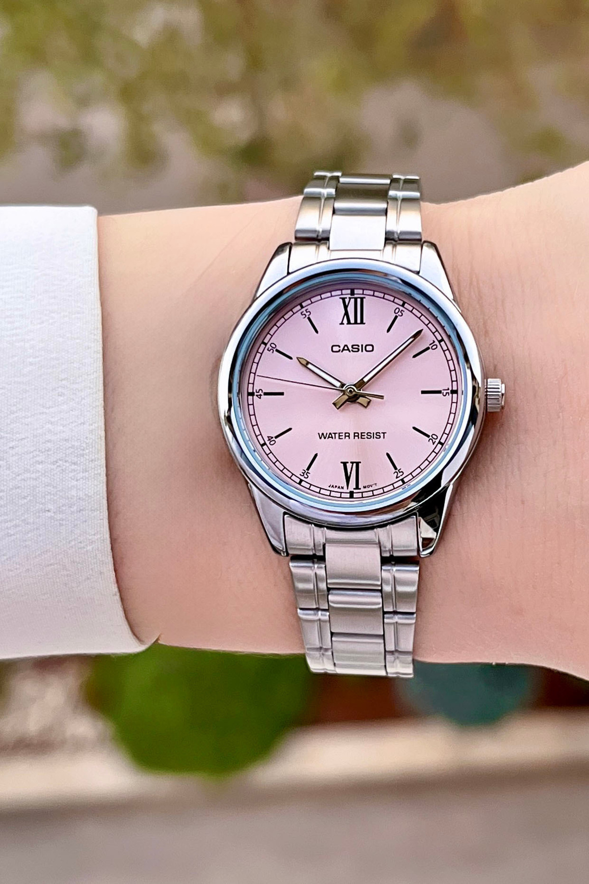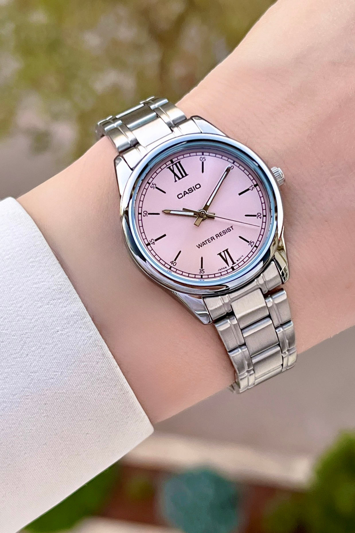Kadranı Pembe Kordonu Gümüş Renk Kadın Kol Saati Kadranı Pembe Kordonu Gümüş Renk Kadın Kol Saati CAS.MTP-1300SG-7AVDF Orta Boy