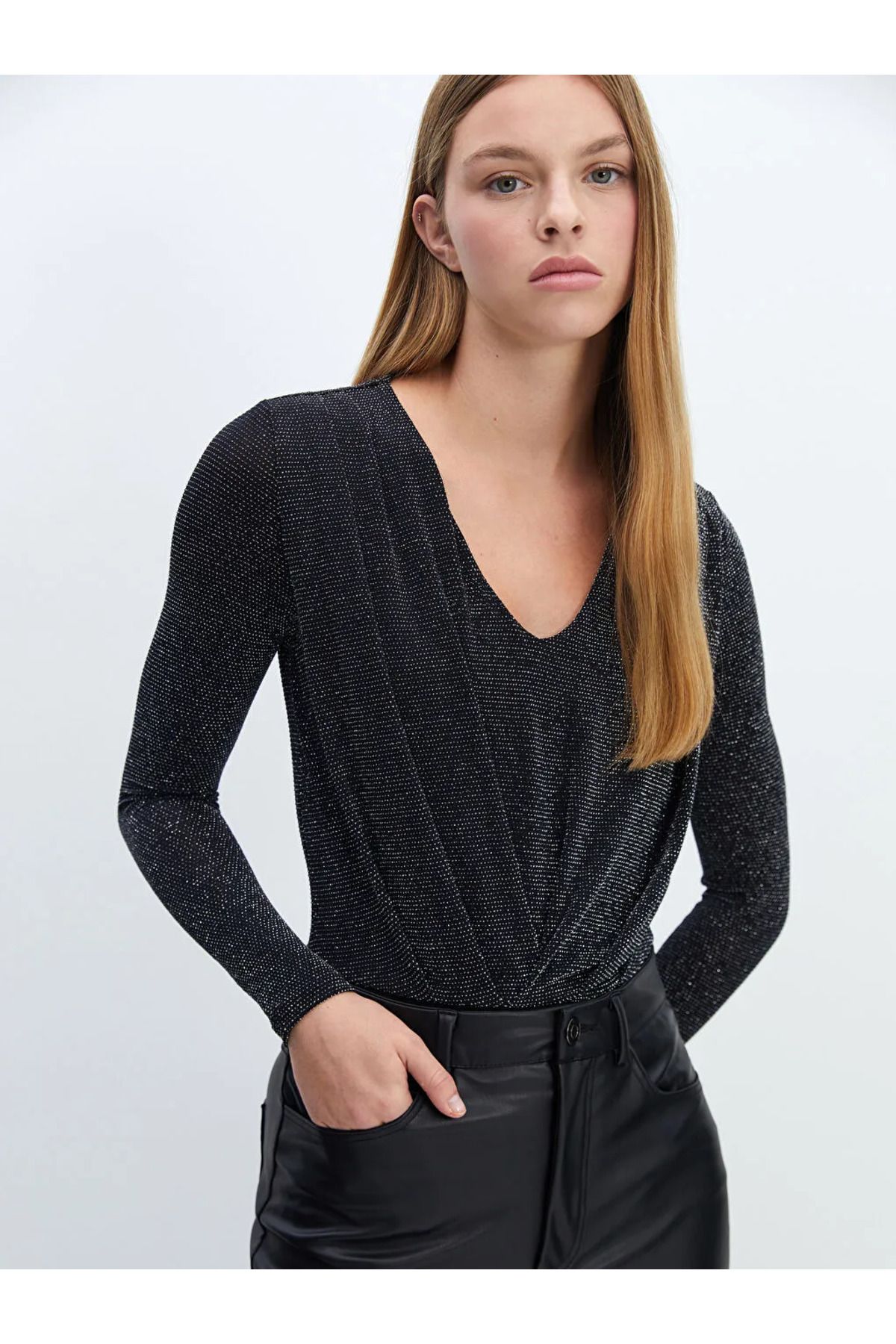 Siyah Damla Yaka Cotton Tshirt Siyah Damla Yaka Cotton Tshirt 2294 46