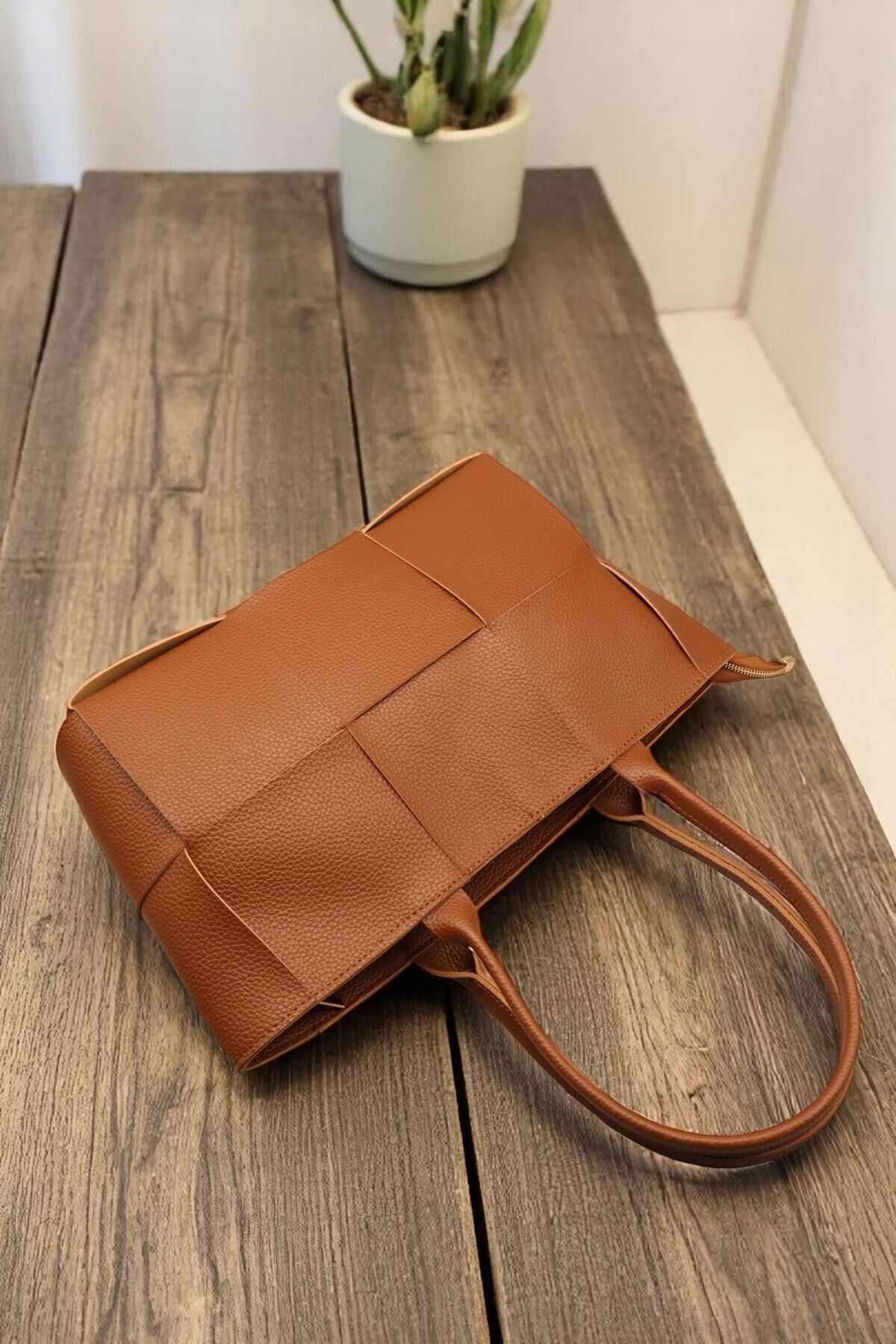 Kadın Taba Kareli El Ve Omuz Çantası. Taba Çanta. Kadın Taba Kareli El Ve Omuz Çantası. Taba Çanta. RY350 تک سایز
