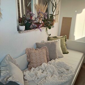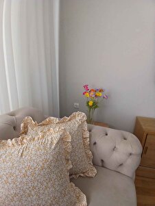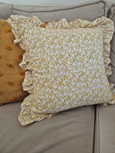 Pamuklu Kumaş Sarı Mini Çiçekli Fırfırlı Kırlent Kılıfı Pamuklu Kumaş Sarı Mini Çiçekli Fırfırlı Kırlent Kılıfı pamuk 40 x 40