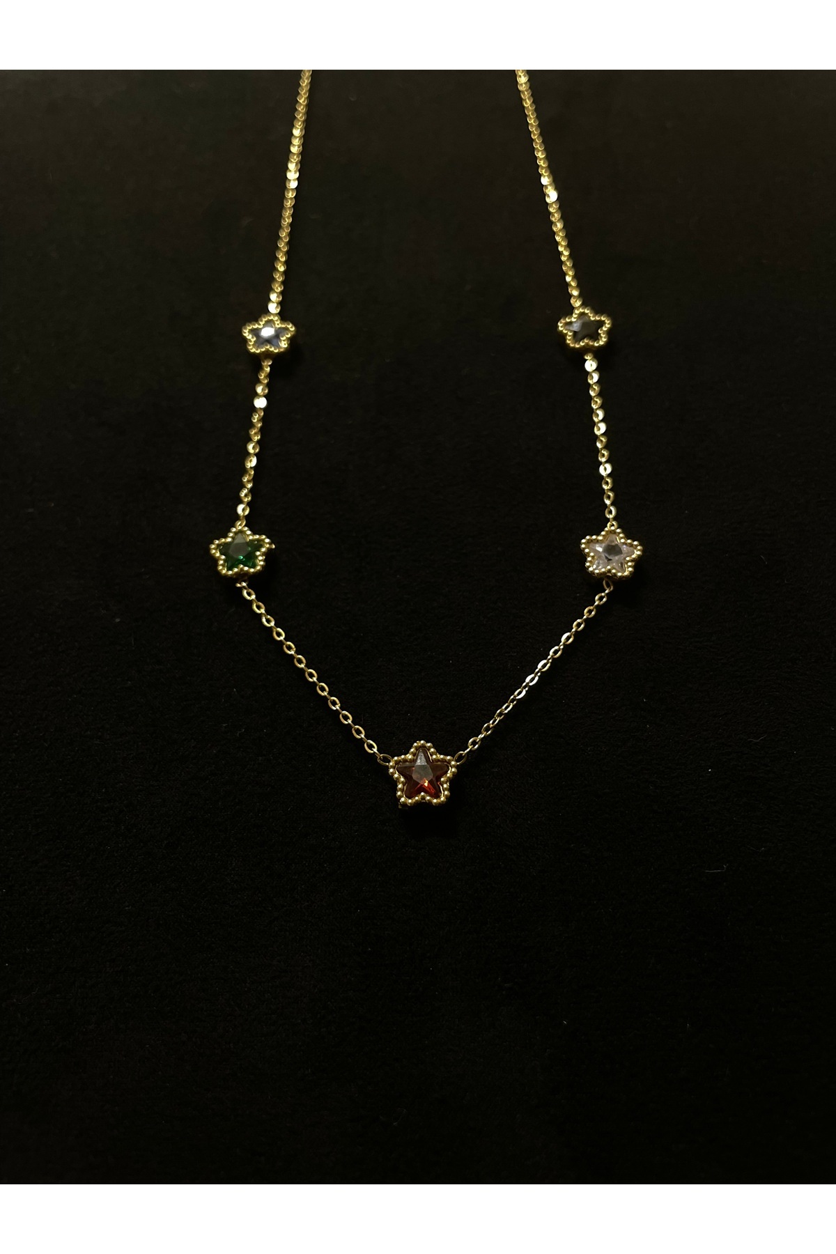 Renkli Yıldız Taşlı Kadın Kolye 45 cm | Paslanmaz Çelik Renkli Yıldız Taşlı Kadın Kolye 45 cm | Paslanmaz Çelik 002 45
