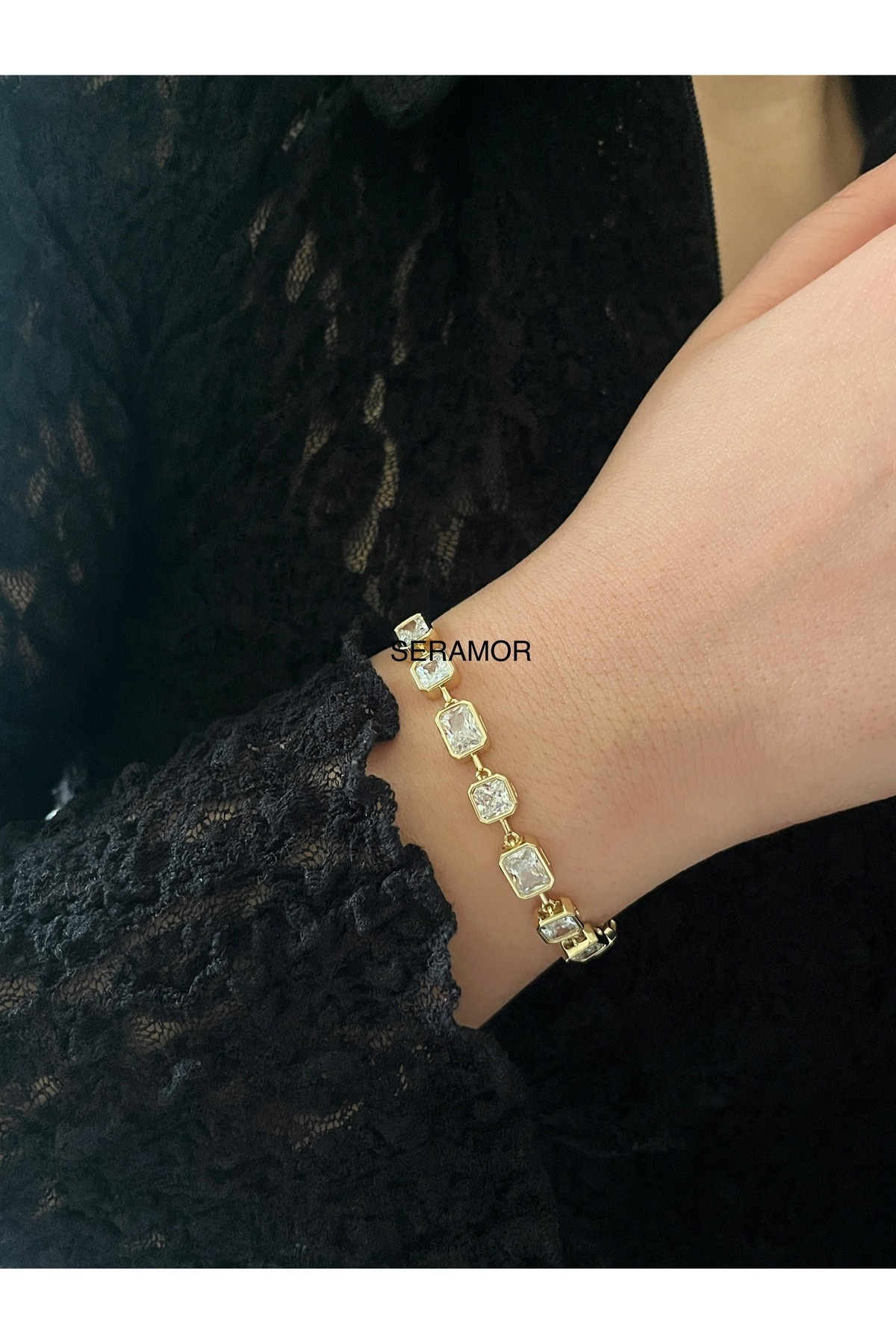 14 k altın renginde taş detaylı kuyumcu işçiliği vip zarif bileklik 14 k altın renginde taş detaylı kuyumcu işçiliği vip zarif bileklik XPNGZRF134481 17 cm