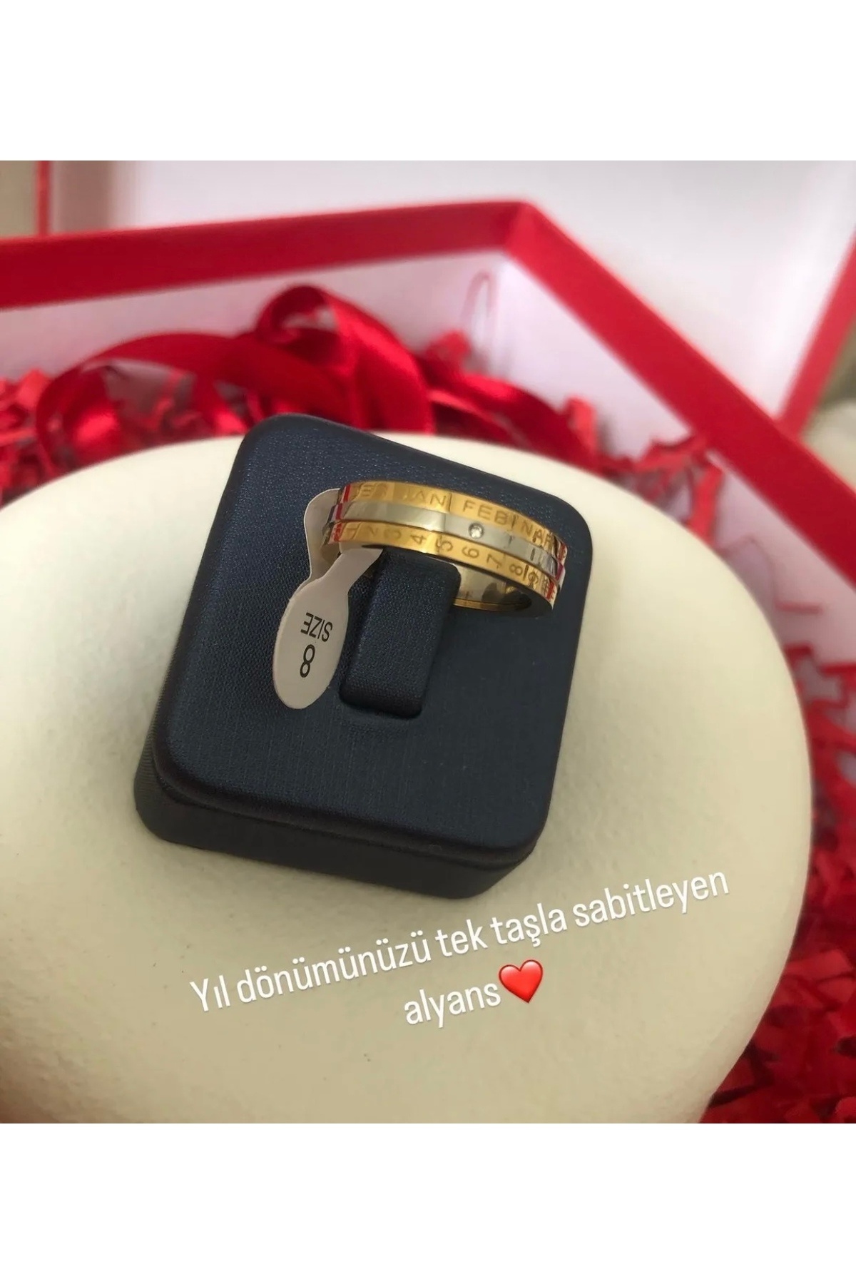 Gold Renk Desenli Çelik Alyans Gold Renk Desenli Çelik Alyans 0261 9