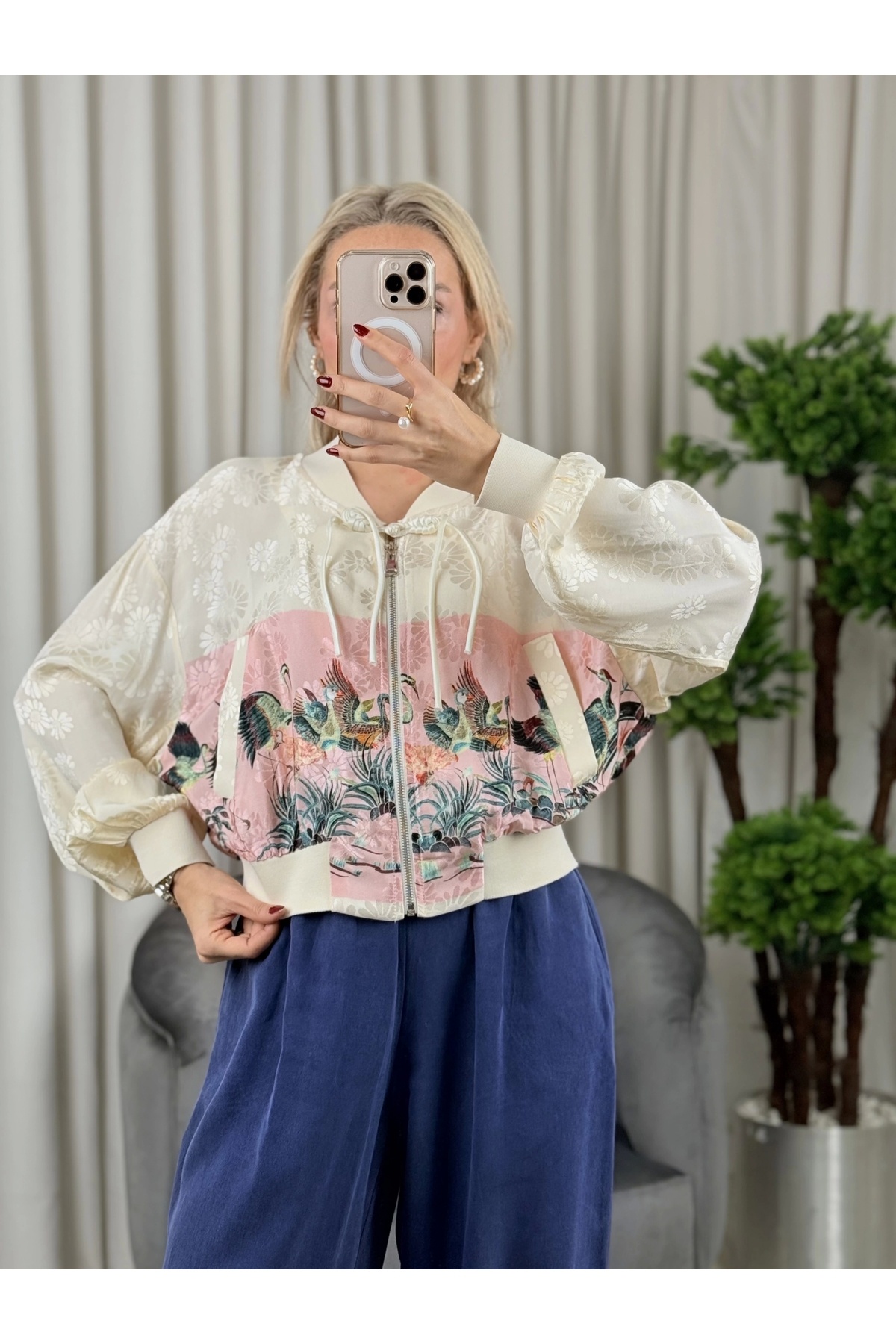On Desenli Ribanalı Ceket Pembe-56511 On Desenli Ribanalı Ceket Pembe-56511 L