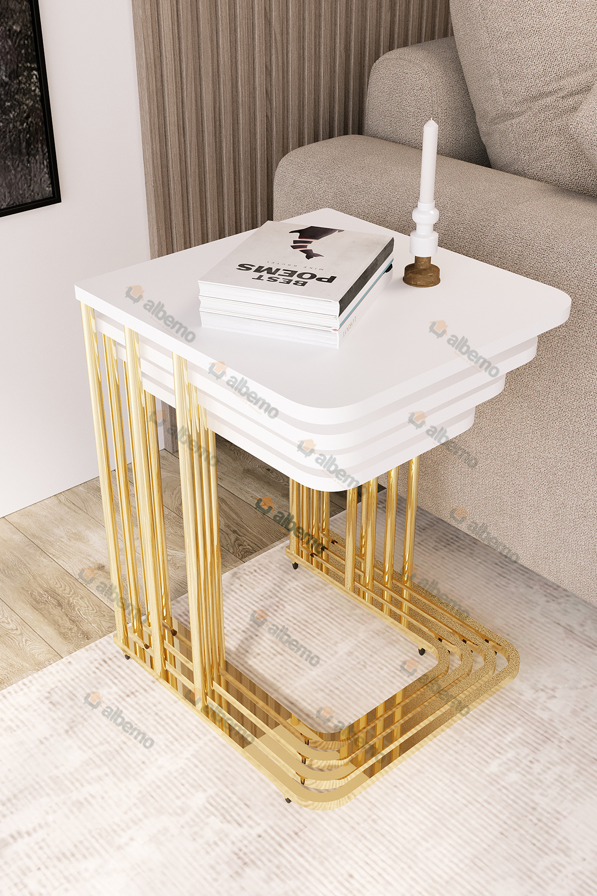 Orkide Tekerlekli 4 Lü Zigon Sehpa Gold- Parlak Beyaz Mdf Orkide Tekerlekli 4 Lü Zigon Sehpa Gold- Parlak Beyaz Mdf ork1 تک سایز