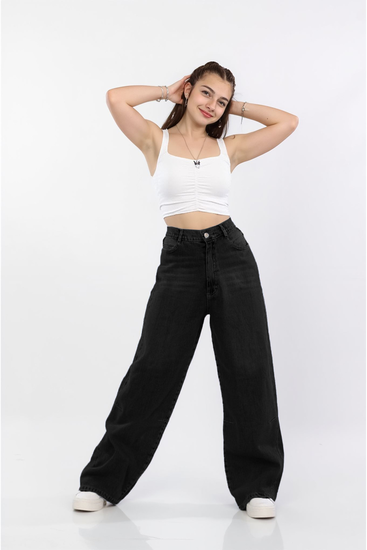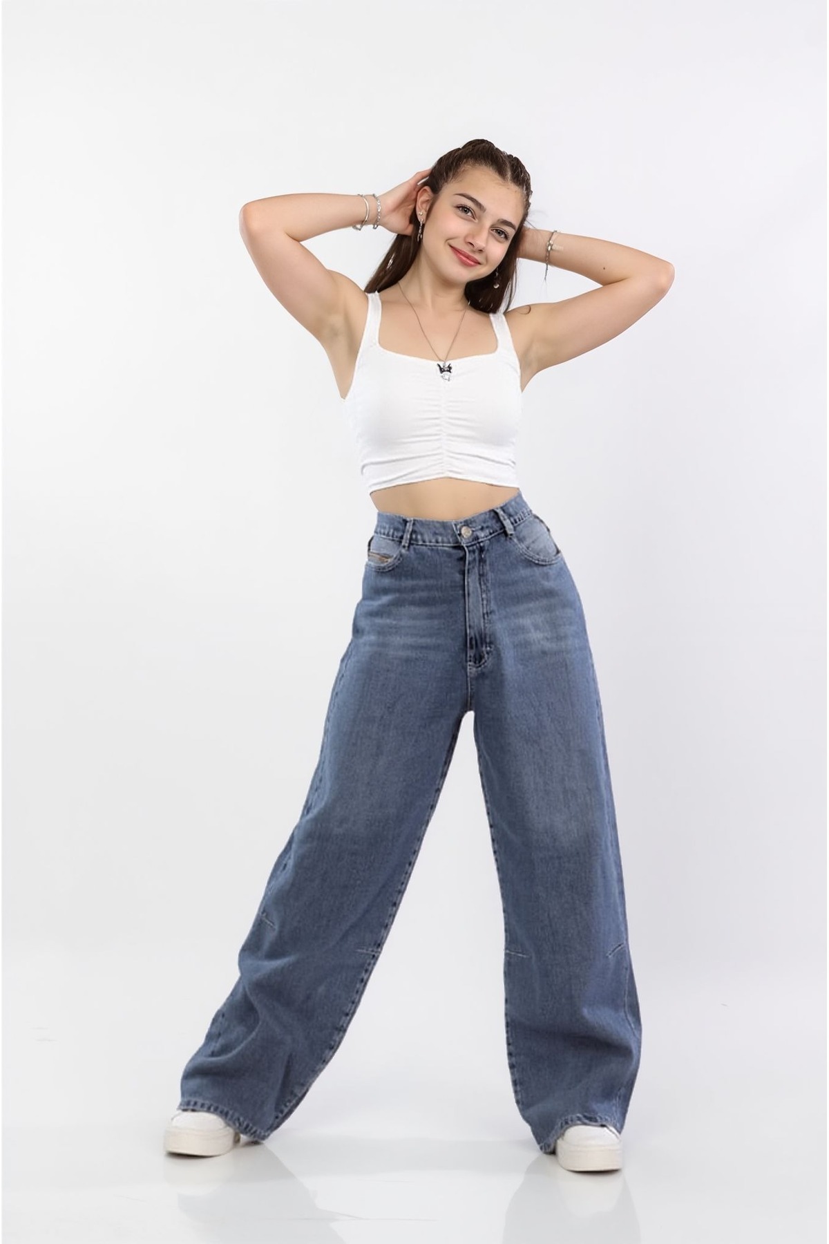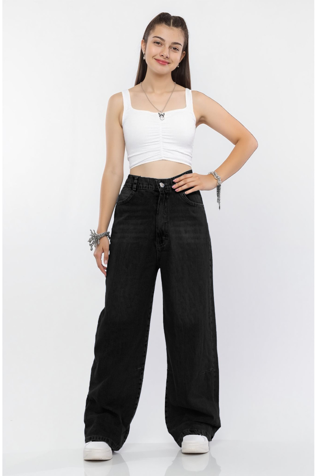 Çocuk %100 Pamuk Geniş Paça Bol Kesim Oversize Kot Pantolon Çocuk %100 Pamuk Geniş Paça Bol Kesim Oversize Kot Pantolon PNT-4046 14-15 Yaş