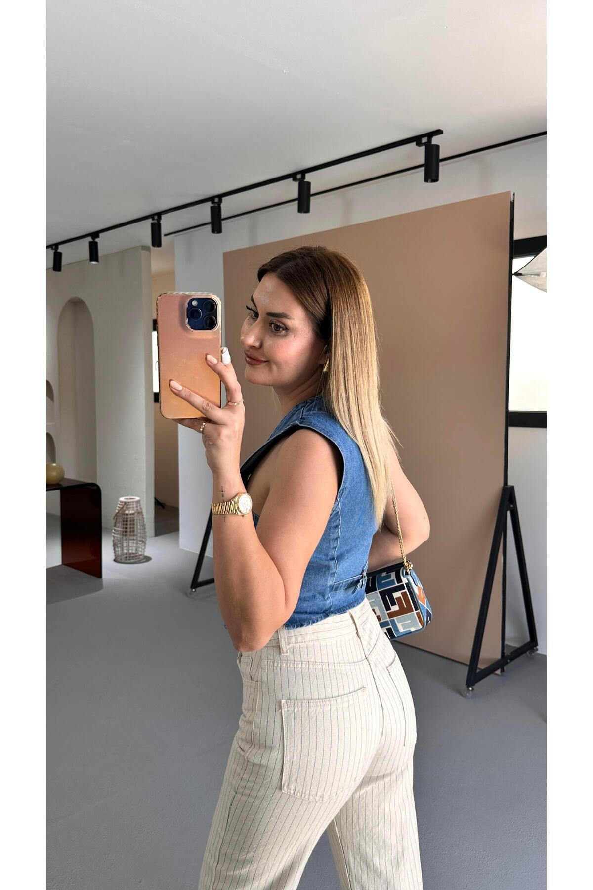 Premium Seri Mavi Çizgili Krem Straight Fit Jean Premium Seri Mavi Çizgili Krem Straight Fit Jean PNT-0524-KRM 44