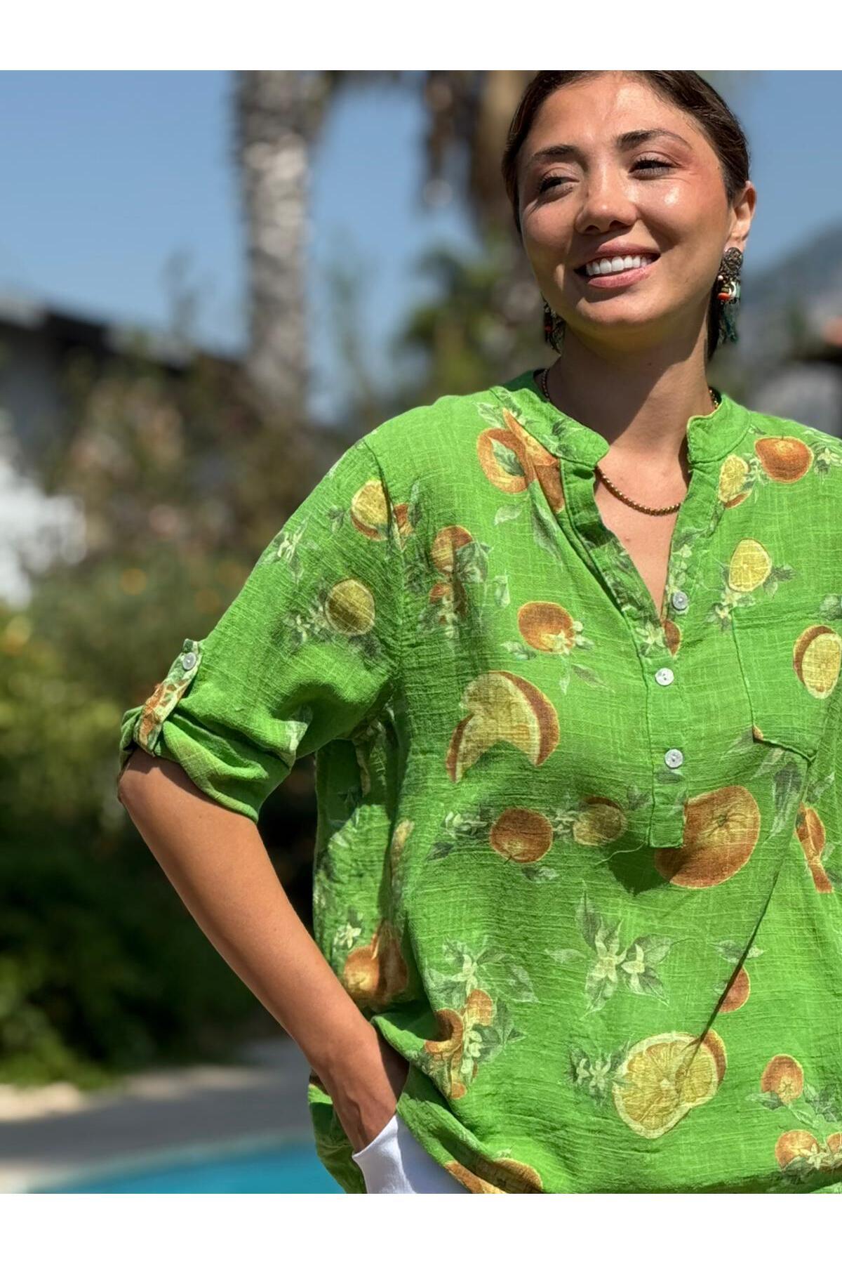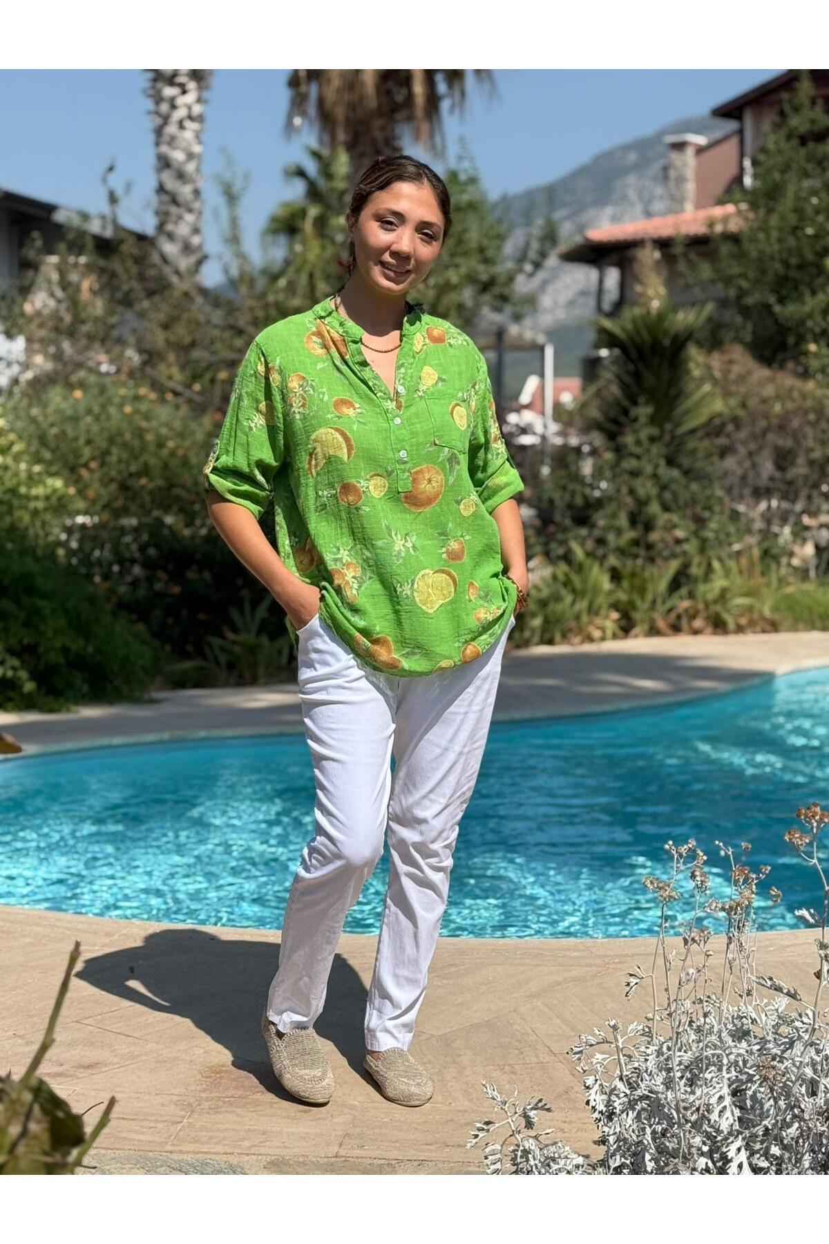 NC154553 İtalyan Pamuk Keten Bluz Yeşil NC154553 İtalyan Pamuk Keten Bluz Yeşil NC154553yesil Standart