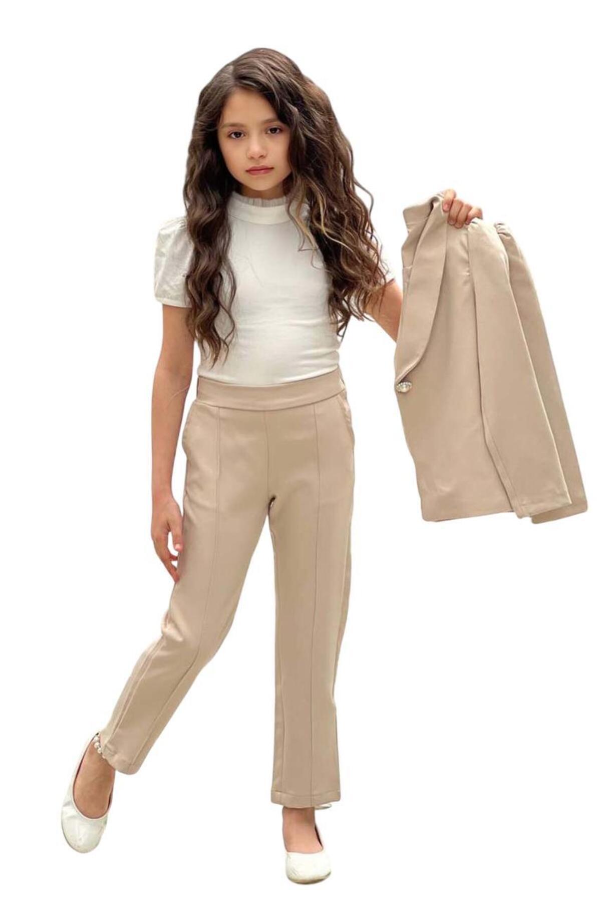 Kız Çocuk Yakası Fırfır Tüllü Dik Yaka Kazak Blazer Ceket Kırçılı Krem Alt Üst Takım Kız Çocuk Yakası Fırfır Tüllü Dik Yaka Kazak Blazer Ceket Kırçılı Krem Alt Üst Takım 2251804023 11-12 Yaş