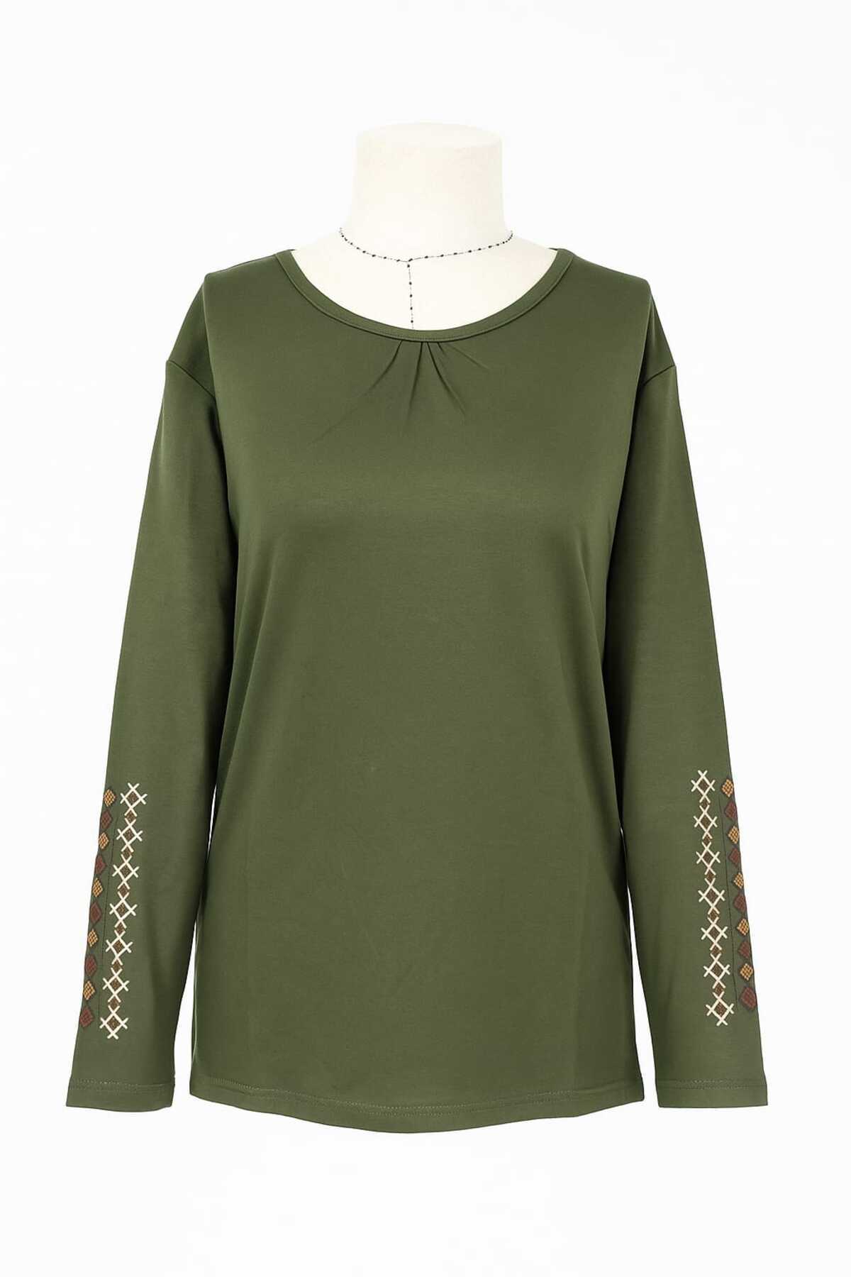 Kadın Likralı Orta Yaş Ve Üzeri Dört Mevsim Haki Anne Penye Bluz Yeni Sezon Kolu İşlemeli Kadın Likralı Orta Yaş Ve Üzeri Dört Mevsim Haki Anne Penye Bluz Yeni Sezon Kolu İşlemeli ANNE0001 2XL