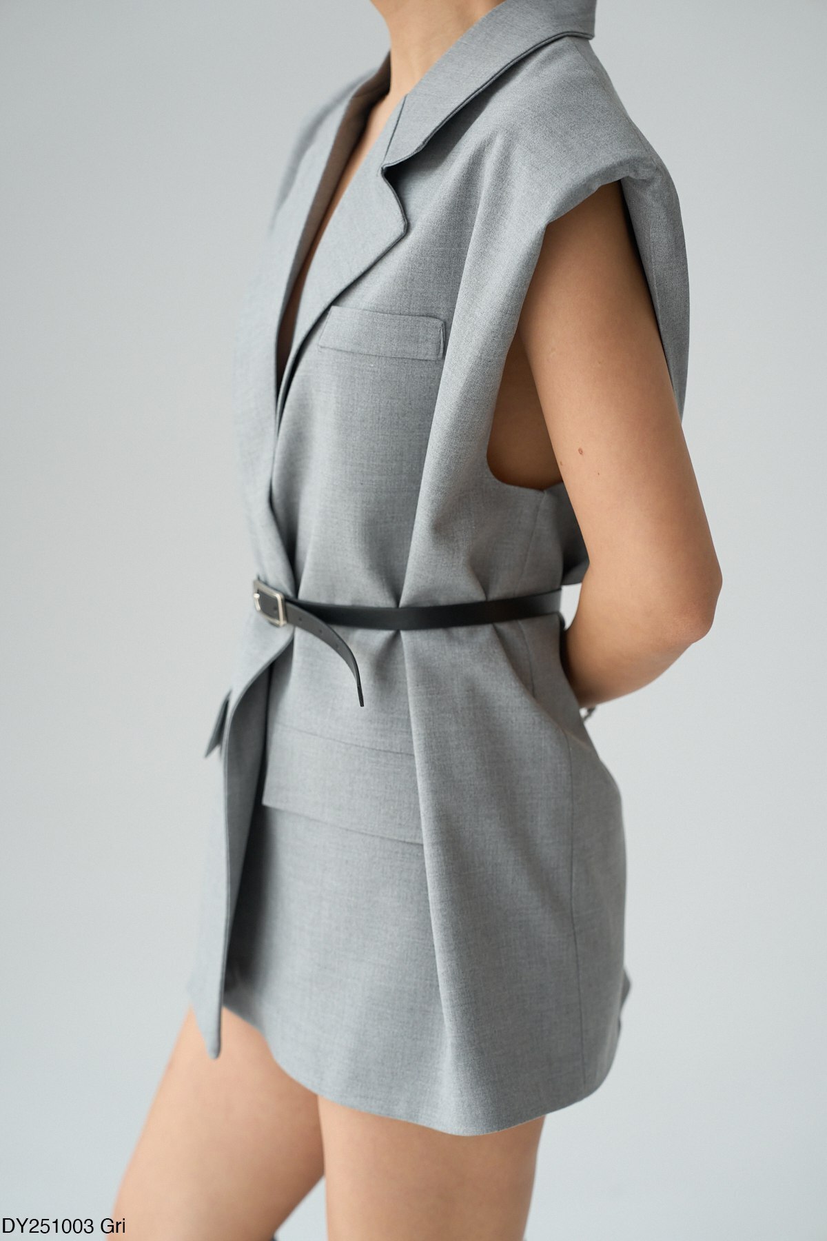 Astarlı Kemerli Düğmeli Oversize Uzun Polyester Kadın Yelek Astarlı Kemerli Düğmeli Oversize Uzun Polyester Kadın Yelek CELİTA5020 Standart