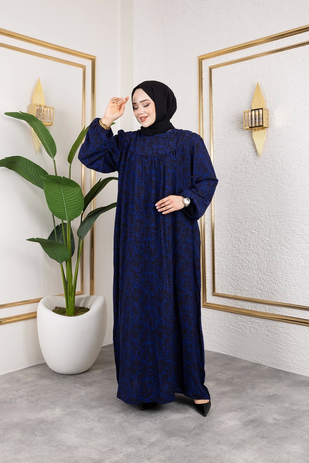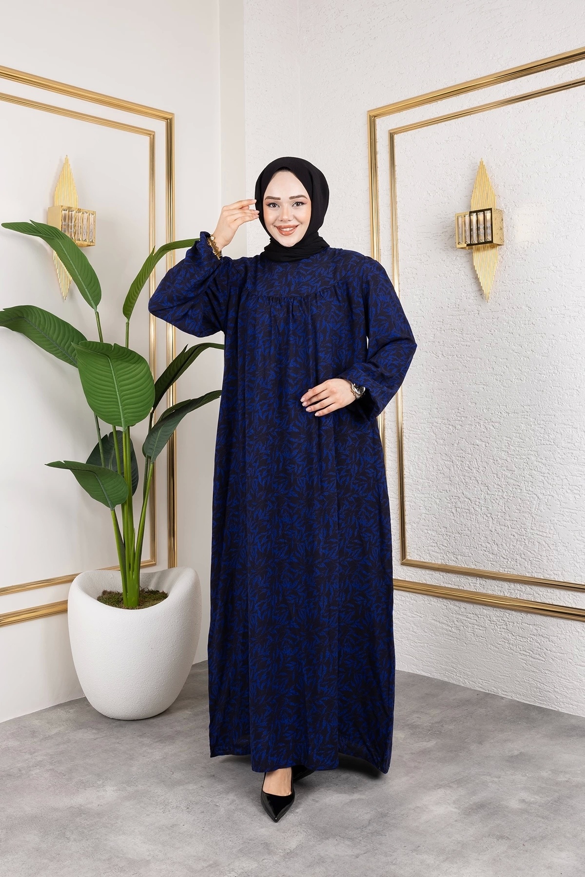 Robalı Desenli Viskon Elbise - Mavi / E0126 Robalı Desenli Viskon Elbise - Mavi / E0126 E126 58-60