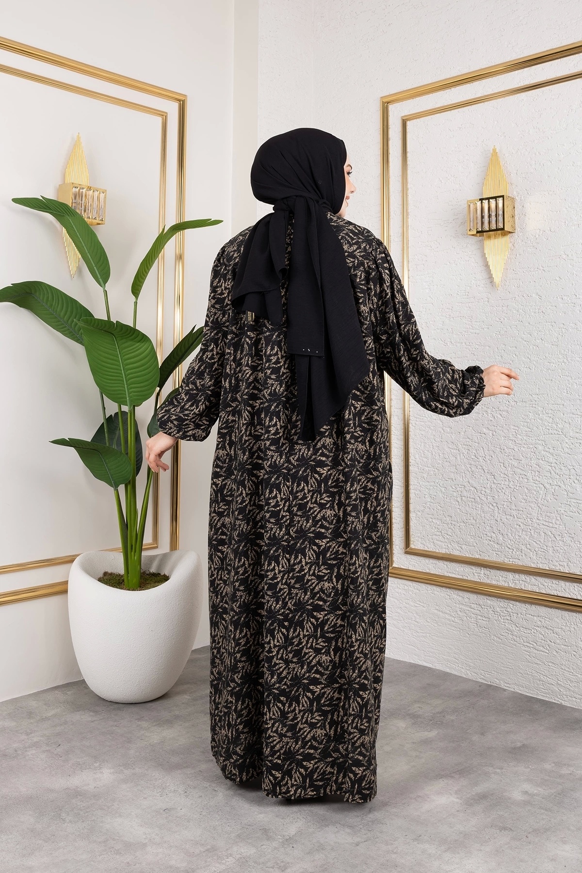 Robalı Desenli Viskon Elbise - Bej / E0126 Robalı Desenli Viskon Elbise - Bej / E0126 E126 58-60