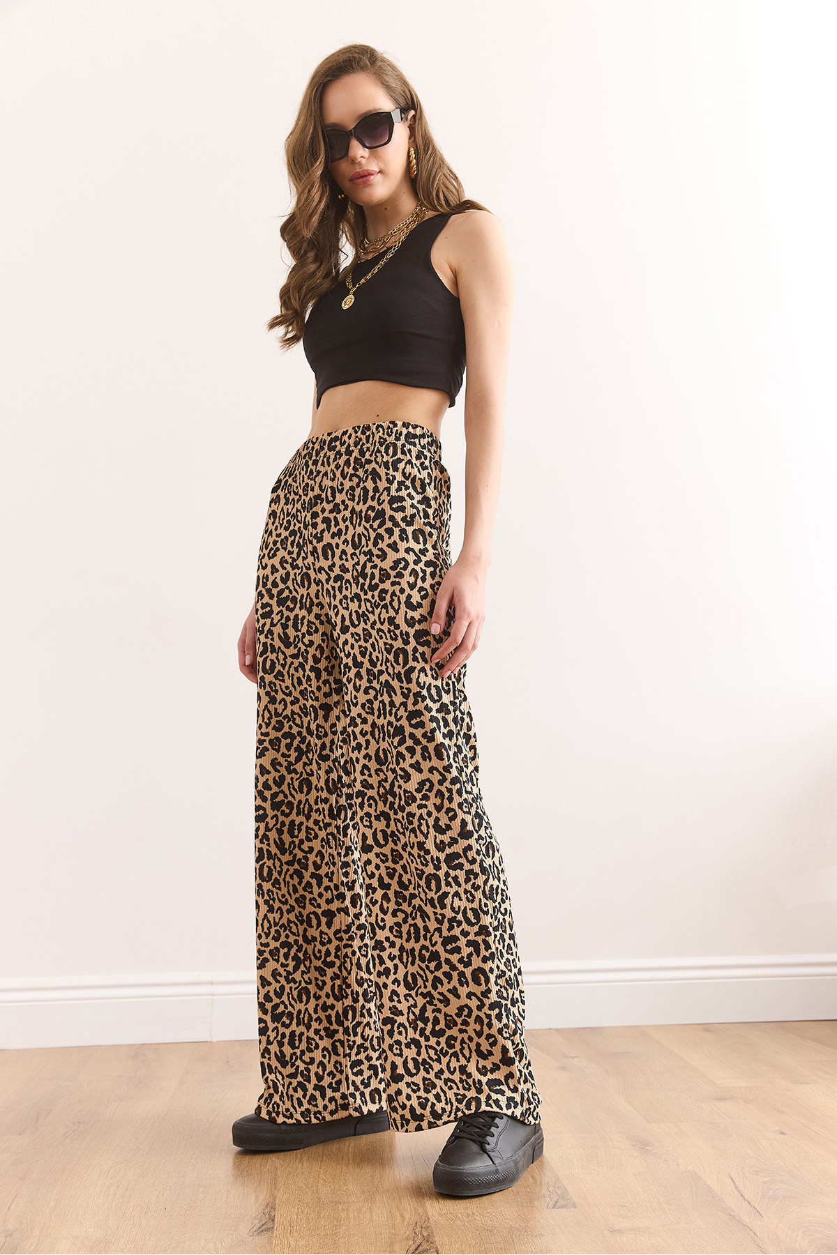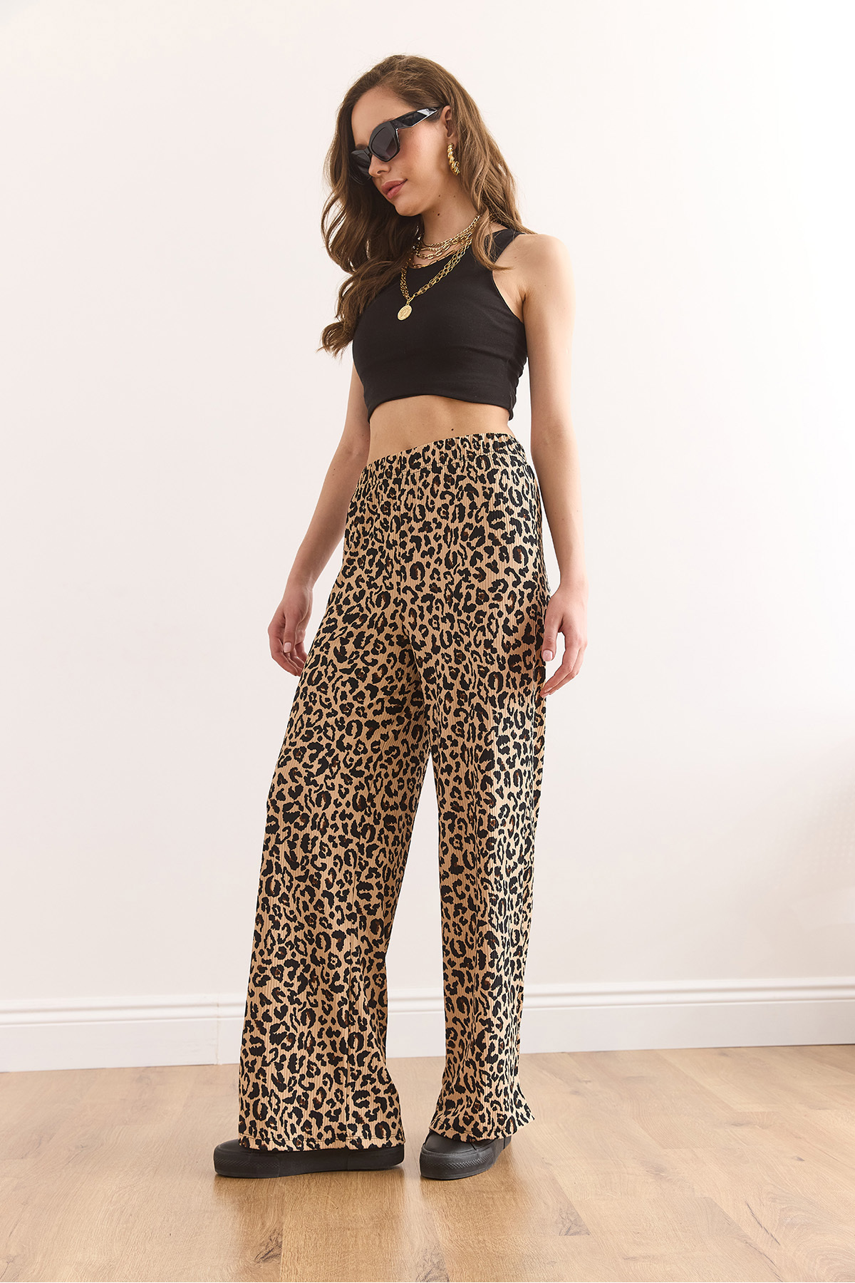 Kadın Taş Beli Lastikli Yüksek Bel Dökümlü Leopar Pantolon PNT-19000335 Kadın Taş Beli Lastikli Yüksek Bel Dökümlü Leopar Pantolon PNT-19000335 XL