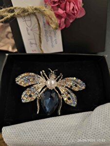 Gümüş Ve Lacivert Renk Taşlı Incili Arı Broş Gümüş Ve Lacivert Renk Taşlı Incili Arı Broş EP2764 تک سایز