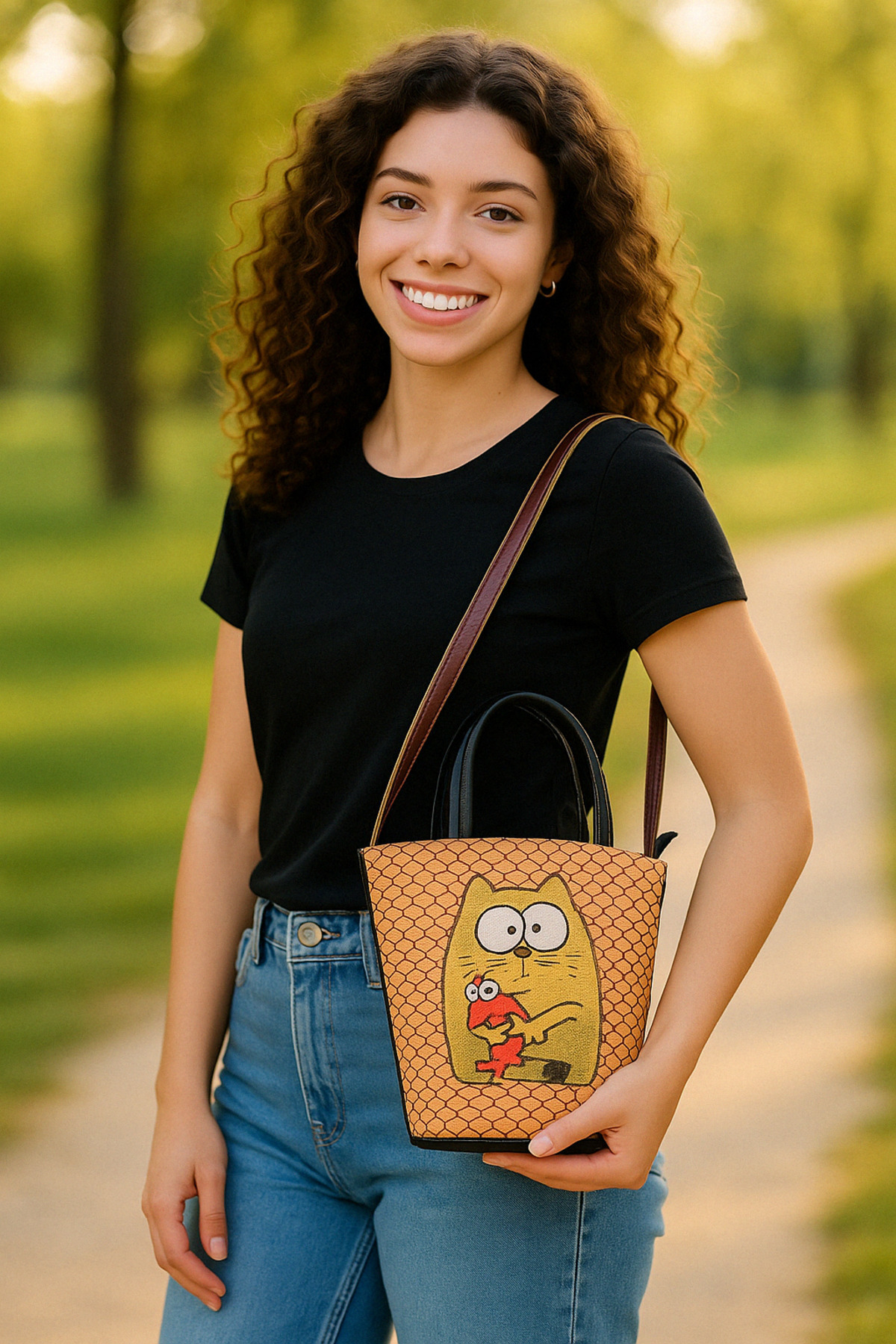 Karakter Desenli Keten Baskılı Kova Omuz El Canta Karakter Desenli Keten Baskılı Kova Omuz El Canta MESDSN02 تک سایز